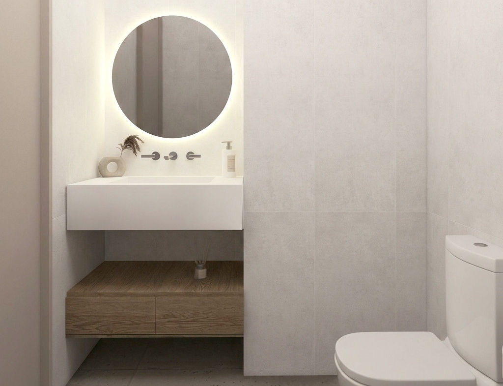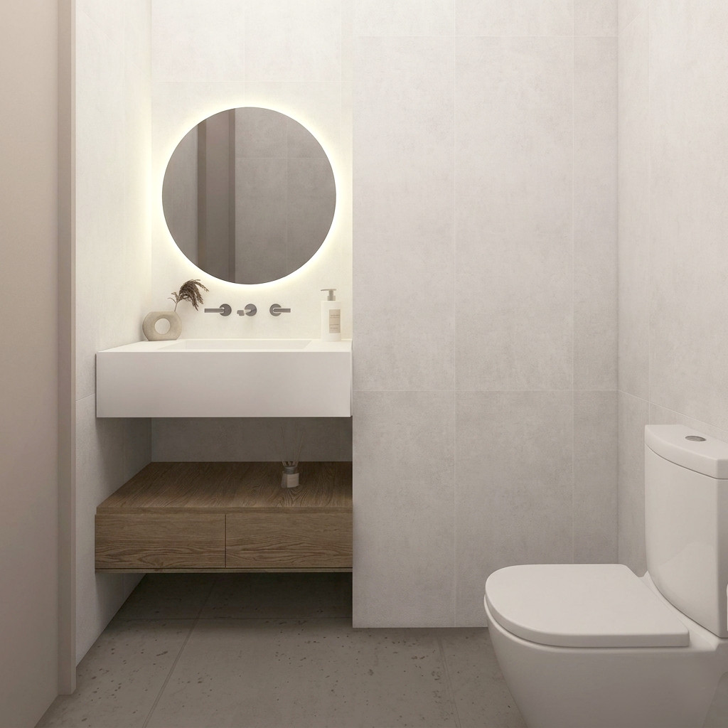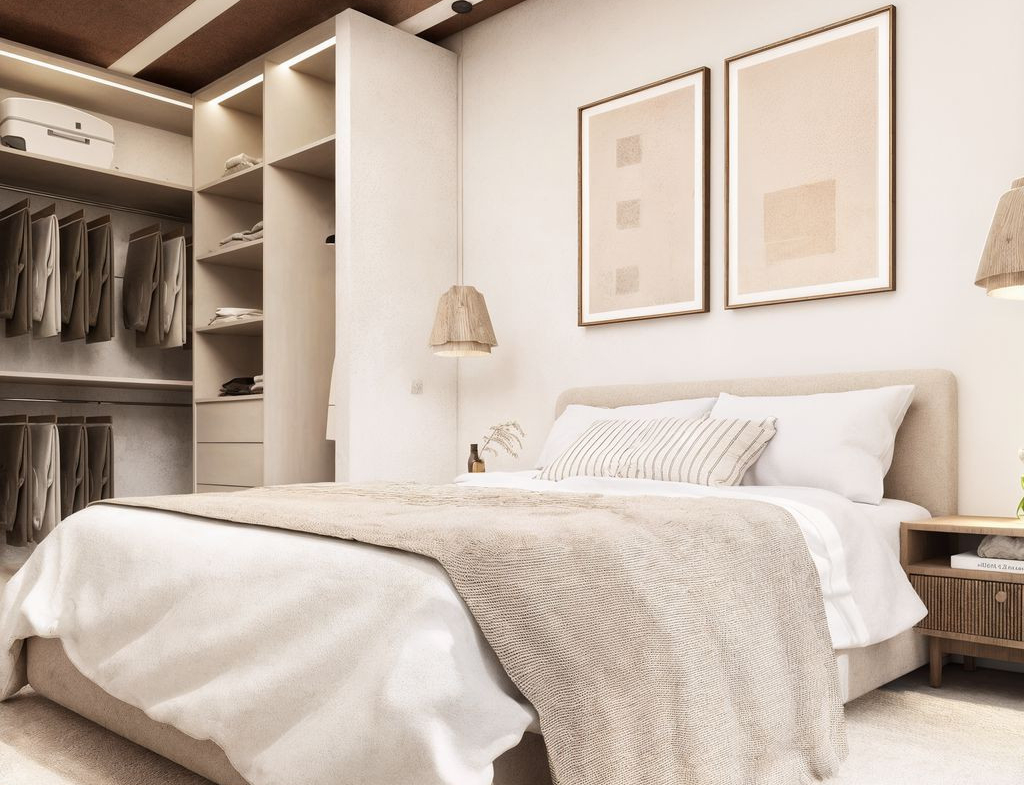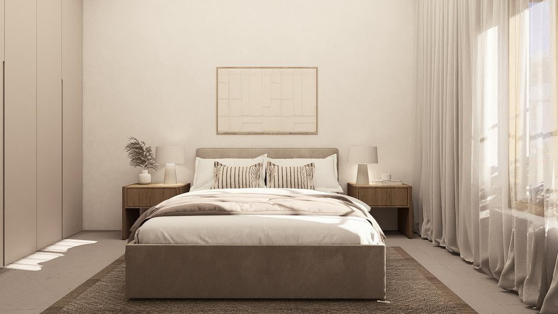 Inside, you'll find three bedrooms and three bathrooms (two en-suite). The living room transitions into an open-plan dining area and kitchen, featuring a breakfast bar and ample storage space. There's a modern fireplace for cooler evenings, and the main bedroom comes with a walk-in wardrobe – proper storage space that you'll appreciate when you're not living out of suitcases. The 20-square-metre covered terrace has space for a dining table and seating area, allowing you to dine outside for most of the year. All bathrooms are contemporary, and the entire property features neutral tones that won't date quickly.