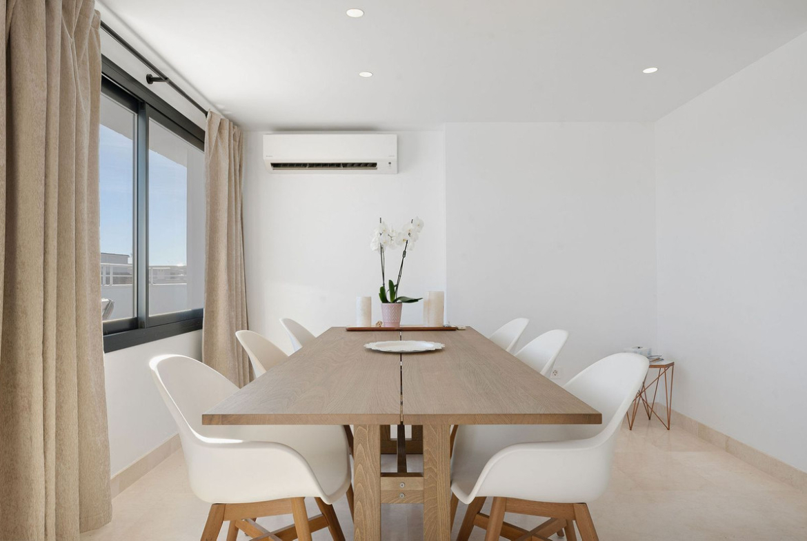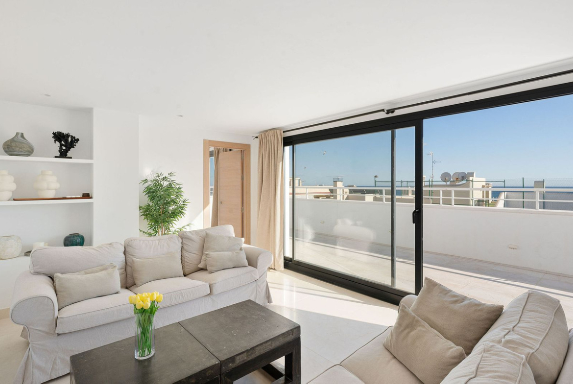 A very special penthouse situated 2nd line to the beach right in the centre of Estepona. The penthouse and terraces occupy the whole of the 6th floor on this building making it one of a kind and very private. The good size living and dining room have access straight out onto the southern part of the terrace with sea views but here comes the beauty, from here you can practically walk around the whole penthouse giving you amazing views in all directions especially over the old town towards the Sierra Bermeja Mountain range. The size of the terrace makes it possible to maximize your outdoor living and at the same time have a change of scenrio when you so desire. This is a truely unique property and has to be seen to be fully appreciated. Please note that the apartment is appr. 100m² constructed plus 187m² of terrace.