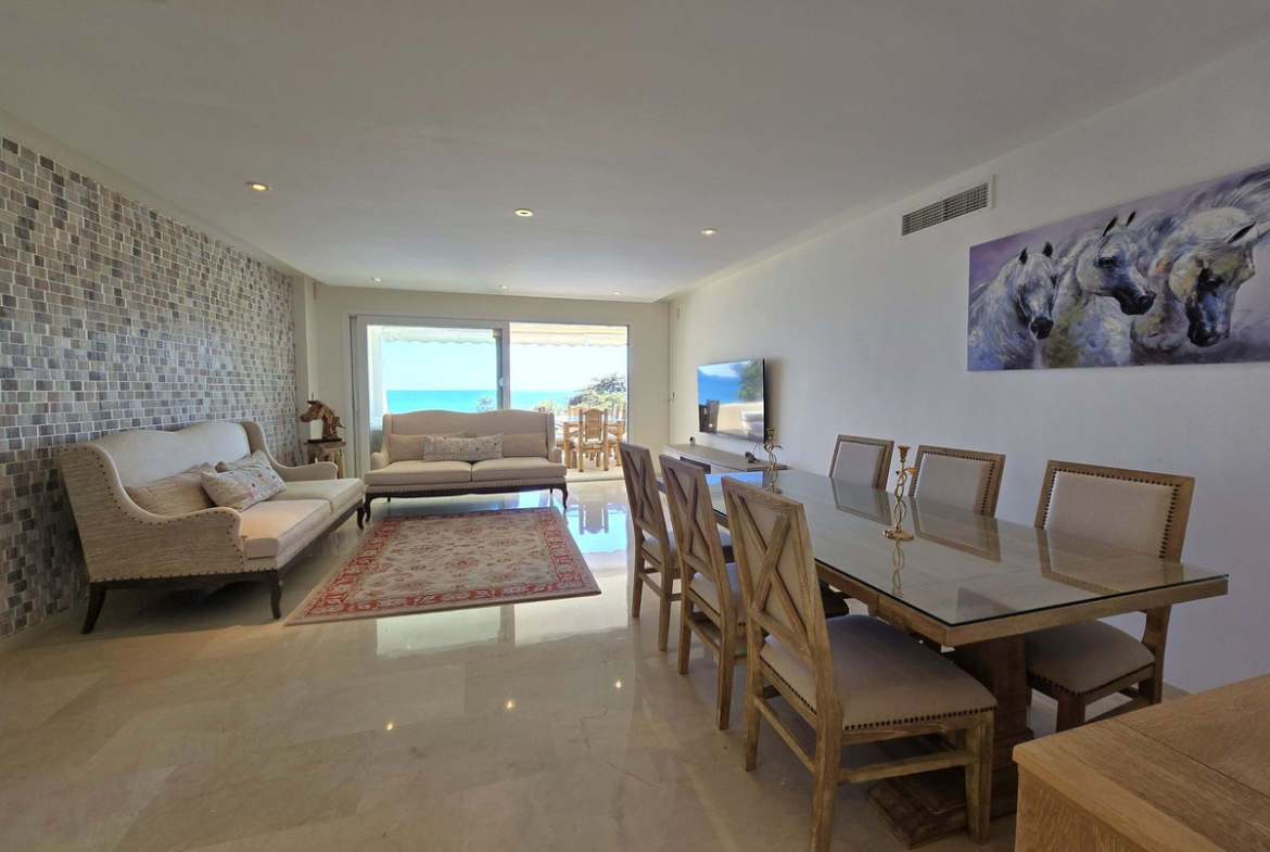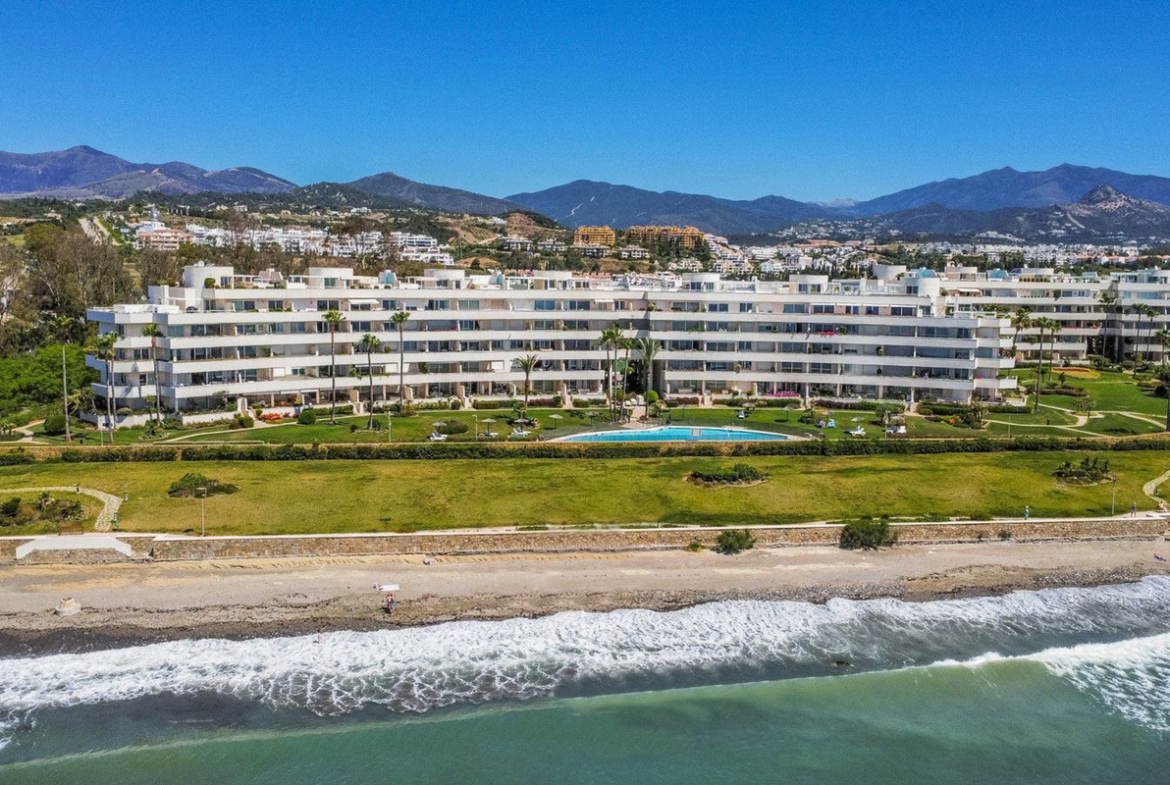 This impeccably presented 3-bedroom apartment boasts the perfect position within this beachfront complex with frontal sea views, is the perfect home to enjoy the wonderful Andalusian way of living. Upon entering the property there is a landing that leads to all the spaces inside the property. On the right of the entrance is a spacious fully equipped kitchen with white cabinets and with its adjacent laundry room. On the other side of the entrance hall is the spacious living room leading directly to the sunny terrace that overlooks the manicured garden and the mesmerizing Mediterranean. Further inside the house, a corridor leads to the 3 bedrooms, including a great master bedroom with en-suite bathroom the. The 2 other bedrooms are spacious with wardrobes and share the other terrace. Part of the luxury community of Los Granados Playa, the property benefits from the highest security and service levels including 24/24 private security, CCTV system, and concierge. The complex offers to its residents a wide range of amenities including several tennis and paddle tennis courts, fully equipped gym, two superb swimming pools, tropical garden and plenty of outdoor parking spaces. There is a coded door leading directly to the promenade and the beach in front of the complex. Private underground parking space and storage room included.