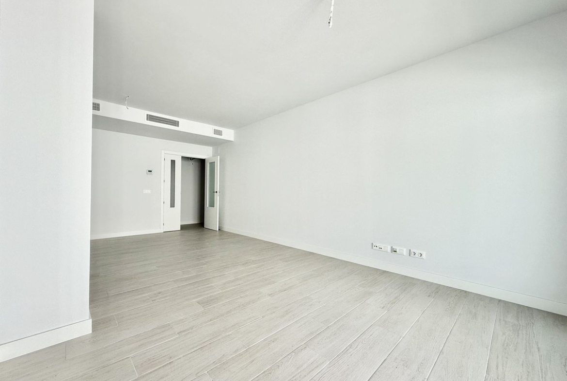 The apartment features a bright living-dining room with access to a private terrace facing the afternoon sun, perfect for enjoying the outdoors. It also features a separate kitchen which can be personalized according to everybody's taste and needs, three spacious bedrooms with built-in wardrobes, and two full bathrooms, one of them en suite.