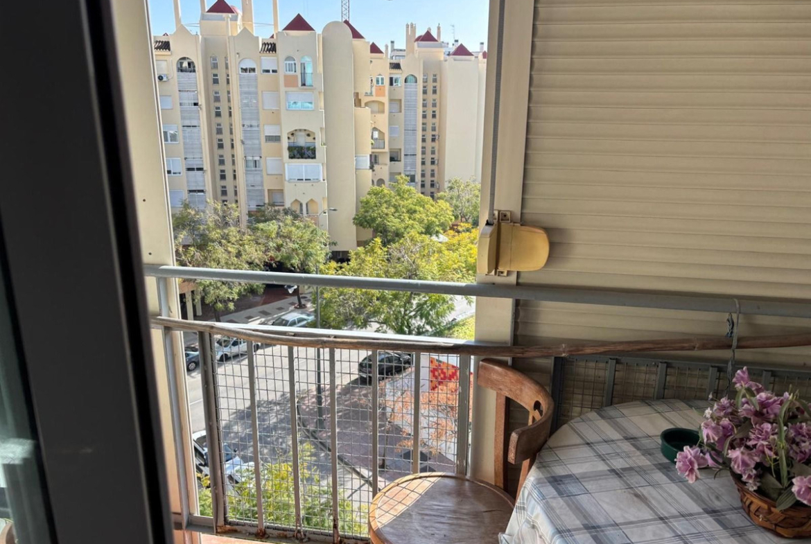 Centrally located apartment in Estepona on the fifth floor with elevator access. Panoramic views as there are no buildings surrounding it. Southeast facing, three bedrooms, one bathroom, balcony, and accessible communal areas. Very spacious apartment. Excellent construction. Water included in the community fees. Ready to move in, although it has great potential for renovation as it is a very spacious and sunny apartment. Located next to all amenities: supermarkets, shops, businesses, pharmacies, medical center, and schools. Everything is within walking distance, and the beach is a five-minute walk.