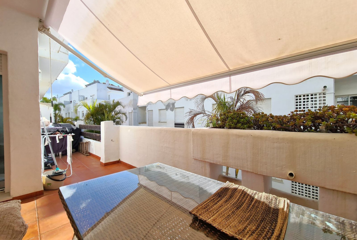 This apartment is located in a residential complex next to the Valle Romano Golf Course, providing a peaceful and natural setting. It is just a 7-minute drive from Estepona town center and 3 minutes from the beach. The Arroyo Vaquero shopping area, with its cafes, restaurants, pharmacies, and supermarkets, is very close by, as are schools and the new Estepona High-Resolution Hospital, all within easy reach. This ground-floor apartment features an entrance hall leading to a spacious living-dining room with access to a large, partially covered, south-facing private terrace. The fully equipped, independent kitchen includes a utility room. The three bedrooms are accessed via the hallway, and all have built-in wardrobes. There are also two full bathrooms: one with a shower and the master bedroom's en-suite bathroom with a bathtub. A parking space is included in the price. We recommend your visit!!