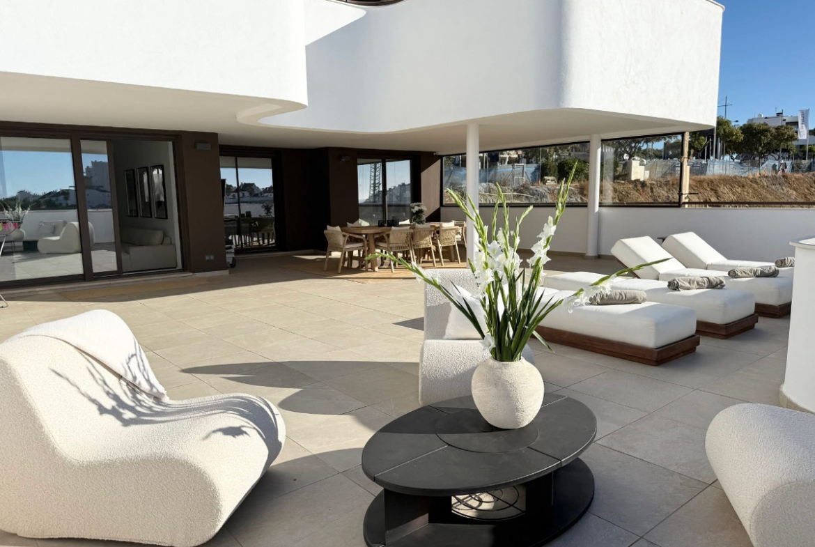 One of the apartment’s standout features is its impressive 100 m² private terrace, enjoying sun throughout the day. Perfect for outdoor dining, lounging, and entertaining, this expansive terrace truly extends the living space and offers the ideal setting for enjoying the Costa del Sol lifestyle.