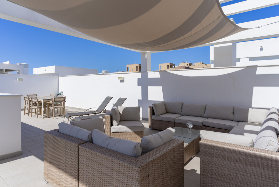 This centrally located apartment is a perfect combination for those who want a modern accommodation but at the same time close to the old town. You'll walk down to the old town in a few minutes where you'll find lots of restaurants, cafes, and bars. Or why not walk down to the beach which is on a 10-minute walk from the apartment. Otherwise, you can enjoy the large rooftop terrace or hang out around the pool belonging to the complex. To the apartment also belongs to a garage space.