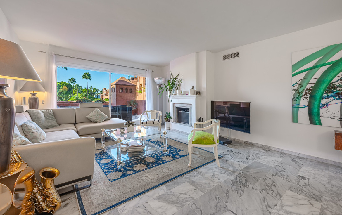 This fabulous apartment is located in one of the best and most exclusive developments in Guadalmina Baja. It faces south with views of the lush tropical communal gardens and the oversized pool area that resembles a beach.