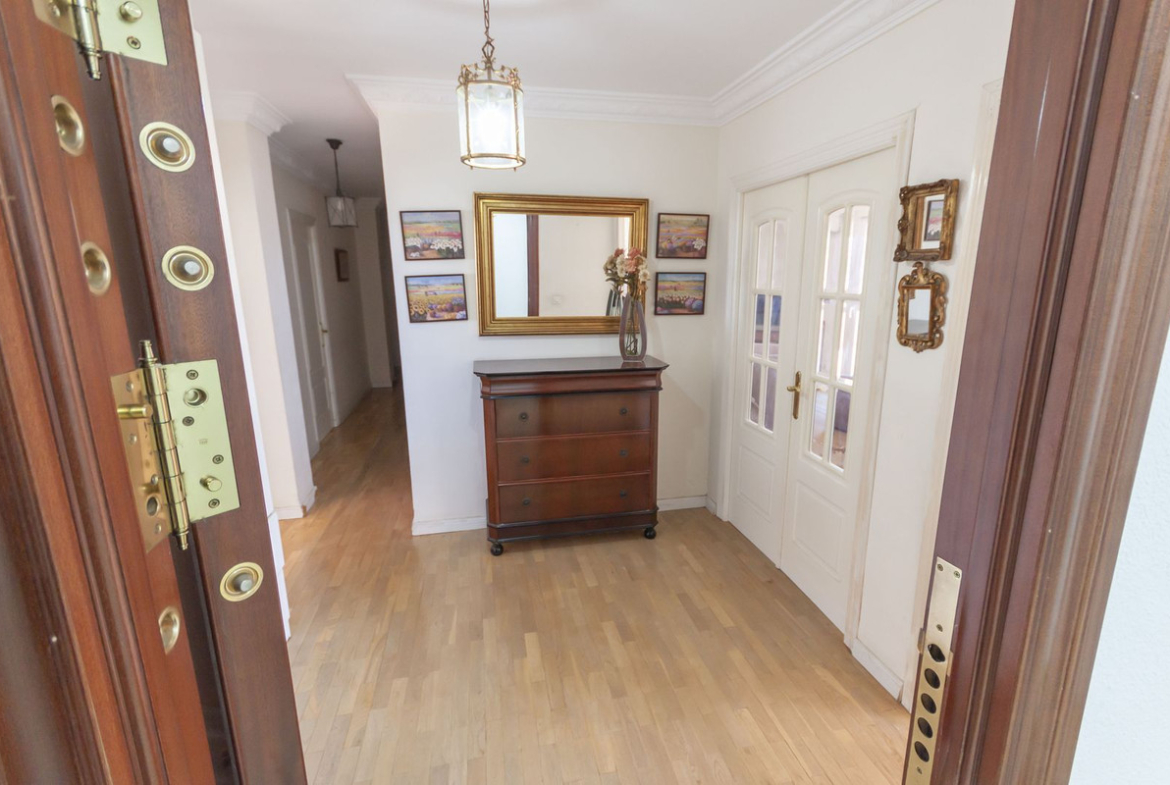 Offering 126 sqm of living space, the apartment includes three bedrooms and two bathrooms, making it perfect for families or as a spacious holiday home. The fully equipped kitchen is ready for cooking with fresh local produce, and the open layout creates a light and welcoming atmosphere. The apartment has a separate dining room that can easily be converted into a fourth bedroom.