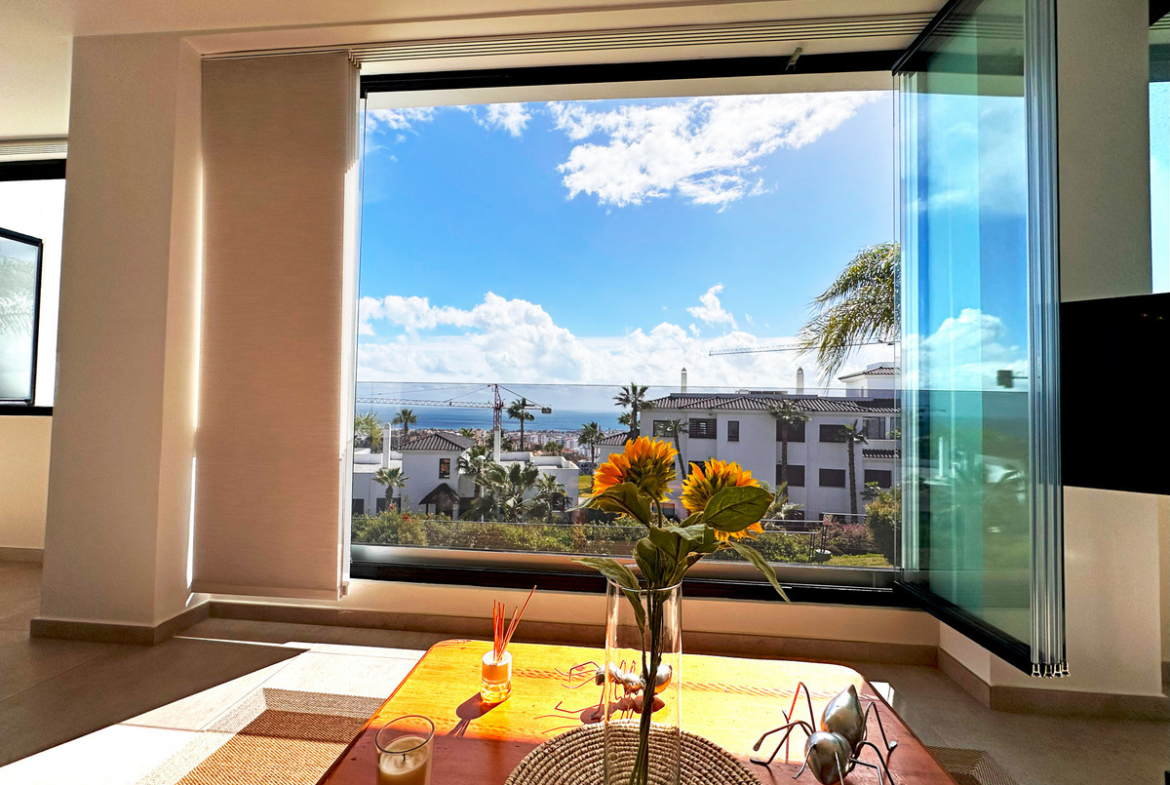 This spacious home consists of 3 bedrooms and 2 full bathrooms, one of them en suite, a guest toilet with double sink, a large living room of almost 40m2 which has been minimized to make a large dressing room for the master bedroom. A state-of-the-art kitchen fully equipped with exclusive high-quality “Neff” appliances gives a modern and clean touch. We can add that from the secondary bedrooms are quite spacious (+13m2) we see Sierra Bermeja and from the master bedroom you can see some impressive sunrises with direct access to the terrace.