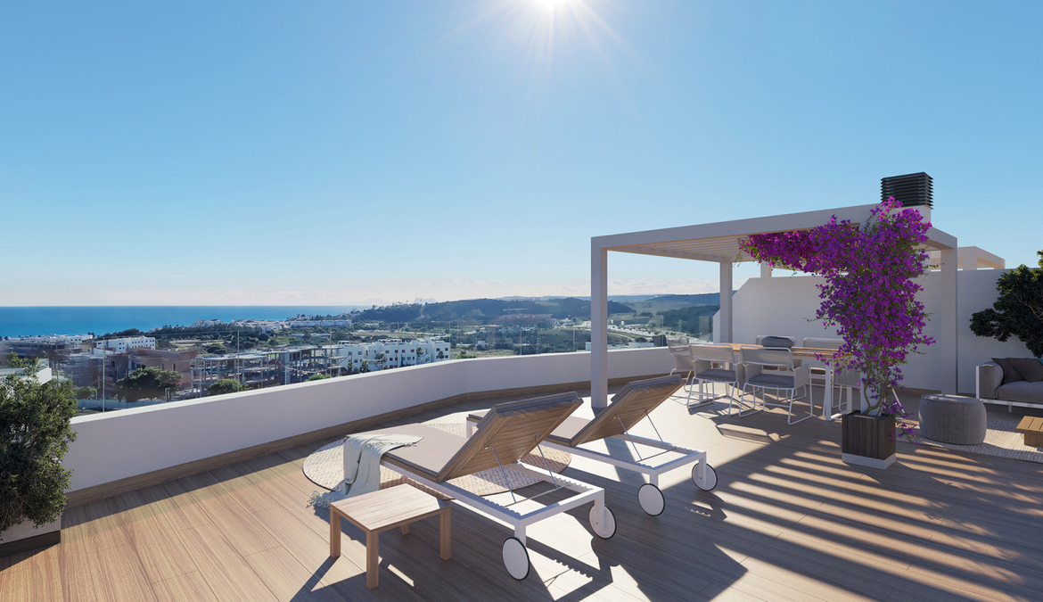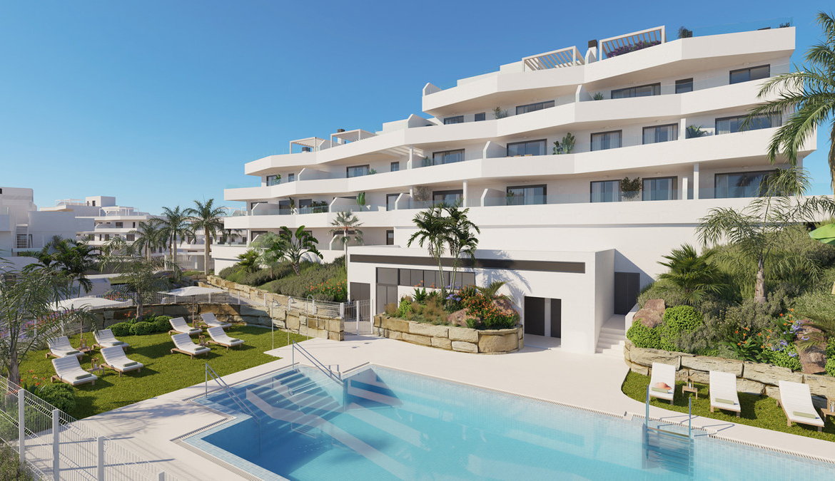 density apartment complex arranged in 40 low-rise residences available in 2, 3 and 4-bedroom configurations. Its elevated position endows it with breath-taking views of the Mediterranean Sea, Gibraltar and the coast of Africa gracing the horizon.