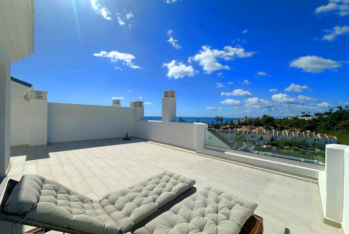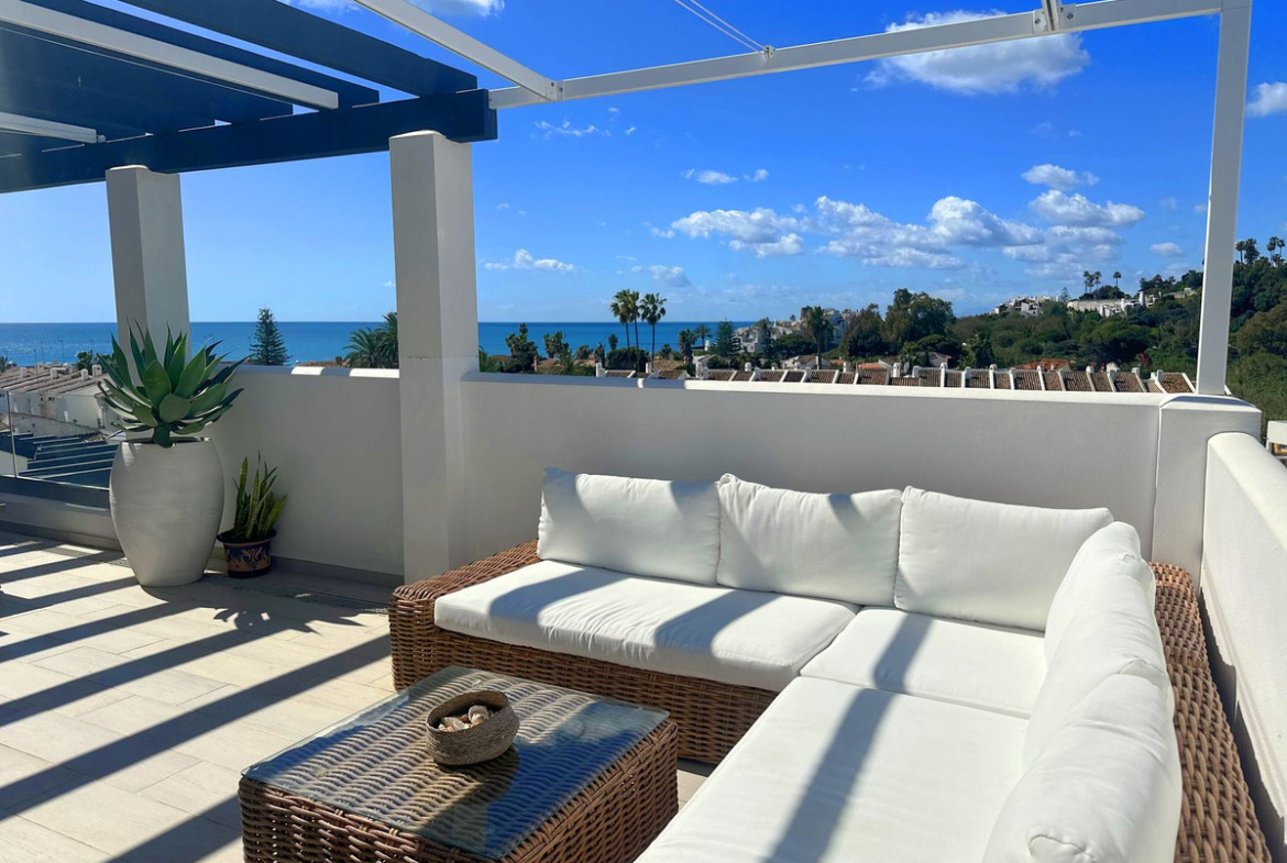 BEACHSIDE PENTHOUSE WITH PANORAMIC SEA VIEWS, This propert combines luxury, spaciousness, and inspiring views. Just a 4-minute walk from the beach and only 5 minutes drive from the center of Estepona, the property boasts a privileged location ideal for those seeking well-being without giving up everyday convenience. Málaga Airport is just 50 minutes away, making getaways or family visits simple and accessible. Facing southeast, the home is bathed in natural light from sunrise to late afternoon. Enjoying also views to the pool, and mountains from its spacious 40m² terrace, as well as from the spectaEcular private solarium of another 40 m² perfect for relaxing or sharing unforgettable moments. In excellent condition, making it ideal for families, a second home, or a solid investment on the Costa del Sol INCLUDING HOLIDAY RENTAL LICENCE. High-quality finishe, while.. The community features well-maintained gardens and pool, and a gym creating leisure and relaxation spaces without leaving home. A storage room and garage are also included. Close to supermarkets and entertainment areas, this property represents a unique opportunity for those in search of luxury, tranquility, and excellent access to both the beach and the city. Whether as a permanent residence or a holiday retreat, definititely a very good investment in one of the most promising areas of the Costa del Sol.