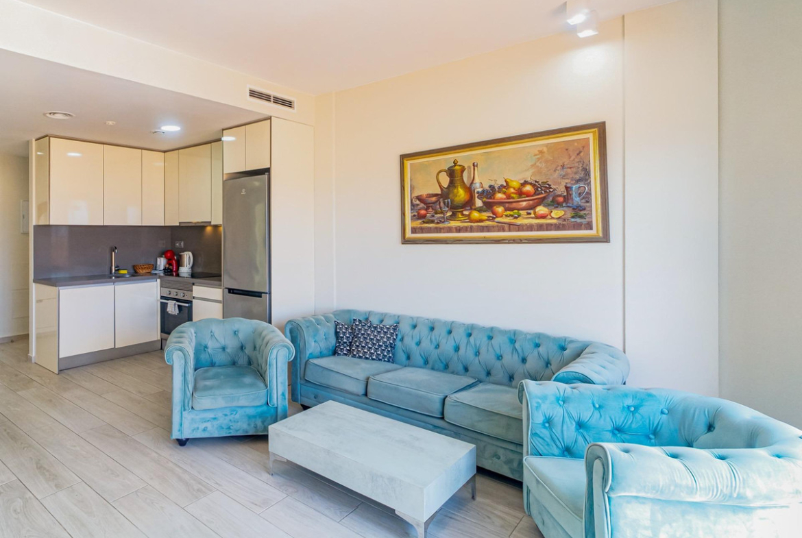 The residential complex offers many amenities: a large pool for younger children, a playground, an heated infinity pool for adults, a ping pong table, a gym room, and a sauna. The apartment is just a few minutes from supermarkets and restaurants. It has been rented out for both short and long stays.