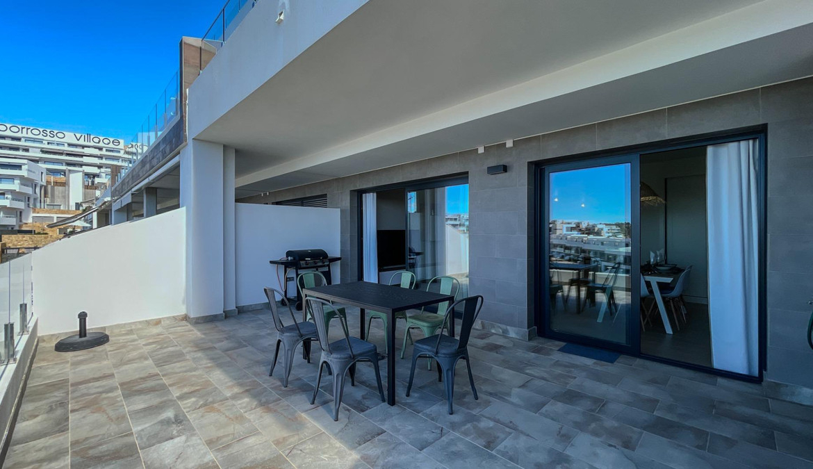 Discover a modern duplex with a terrace and solarium in the prestigious Camporrosso Village complex near BenidormA stylish duplex is for sale in the prestigious residential complex Camporrosso Village, located in one of the most sought-after areas of the Costa Blanca coast. The modern complex offers a high level of comfort, privacy, and developed infrastructure.The property, covering approximately 200 m², features a spacious 20 m² terrace and is just 4 km from Playa de Poniente beach. The house includes 3 bedrooms, 4 bathrooms, a bright living room with access to the terrace, and a fully equipped kitchen. It also has a private solarium where you can enjoy the sun and beautiful views.Residents of the complex have access to a communal pool, gym, sauna, green areas, and children's playgrounds, as well as private parking.Its convenient location near the Melia Villaitana Golf Club, the Centro Comercial La Marina shopping center, and just 10 minutes from the center of Benidorm makes this property an excellent option for both living and investment.