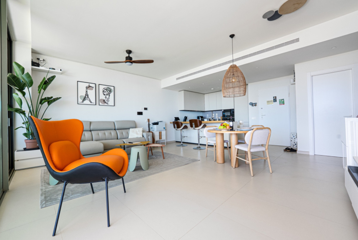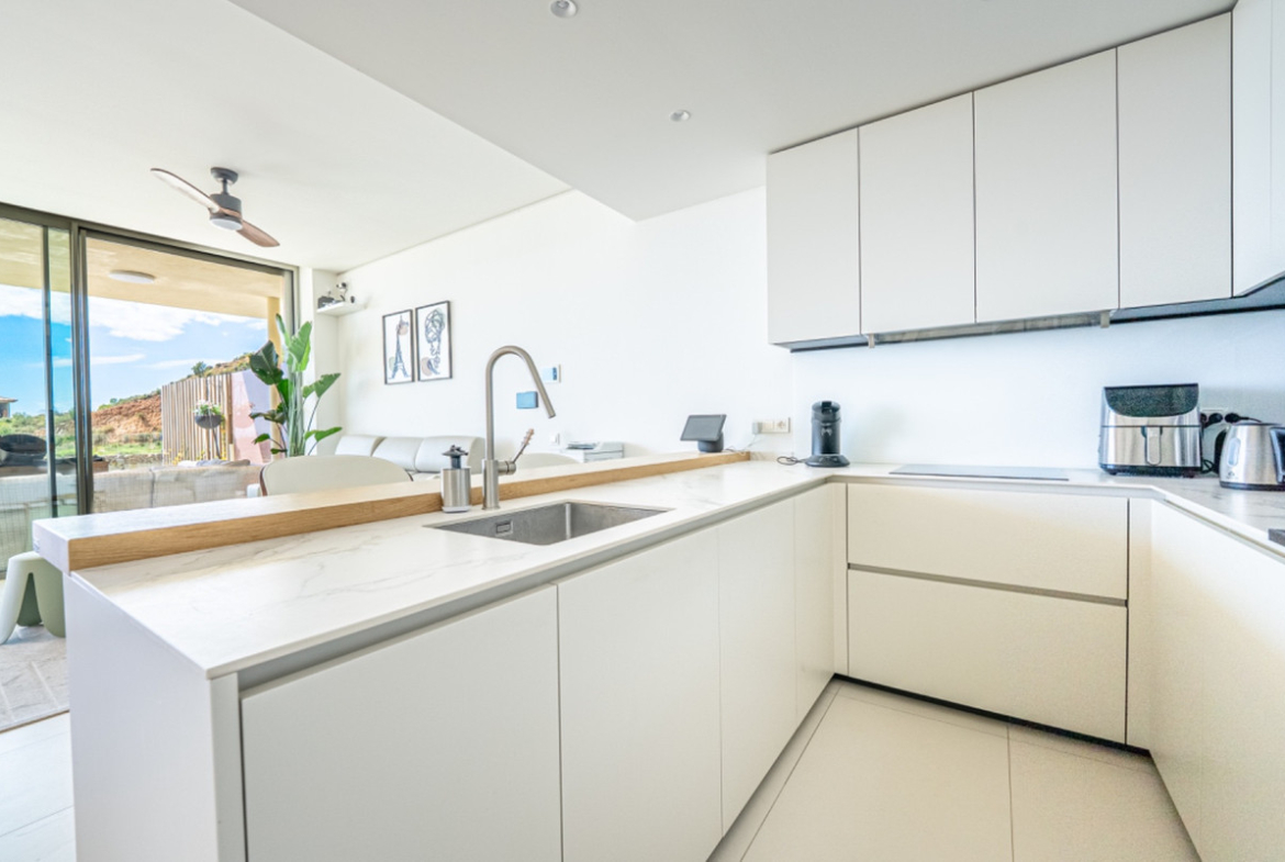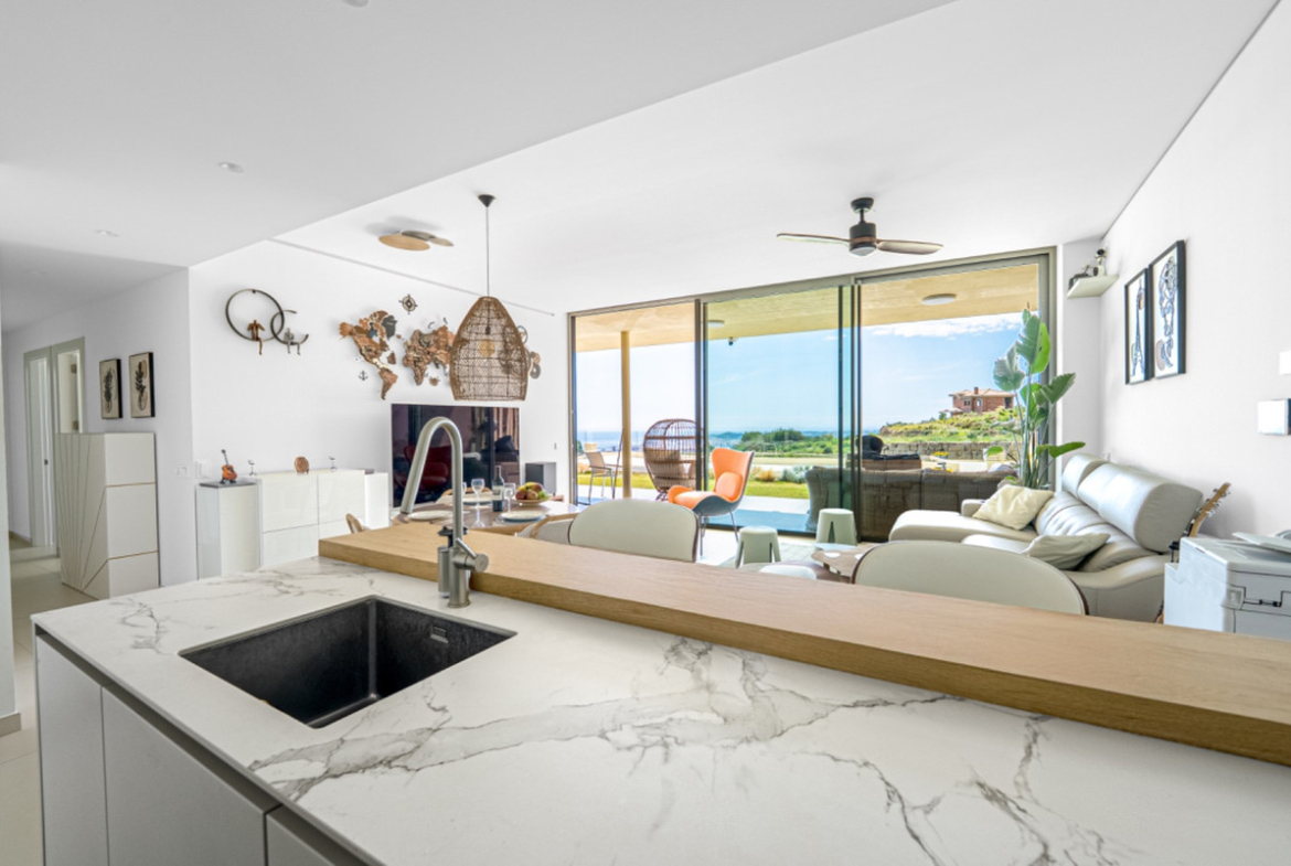 The kitchen overlooks the living and dining areas, all receiving of vantage points to enjoy the amazing views. Elegantly furnished in neutrals the overall impression is one of open space and is light bright and airy.