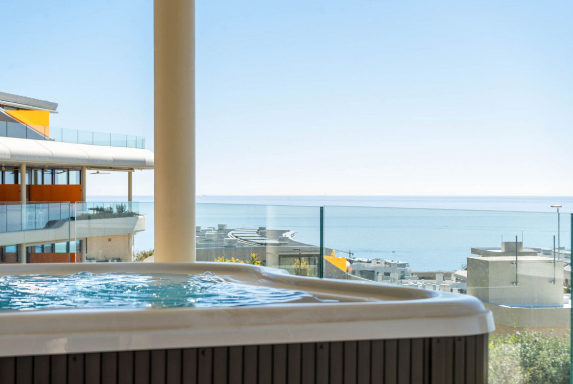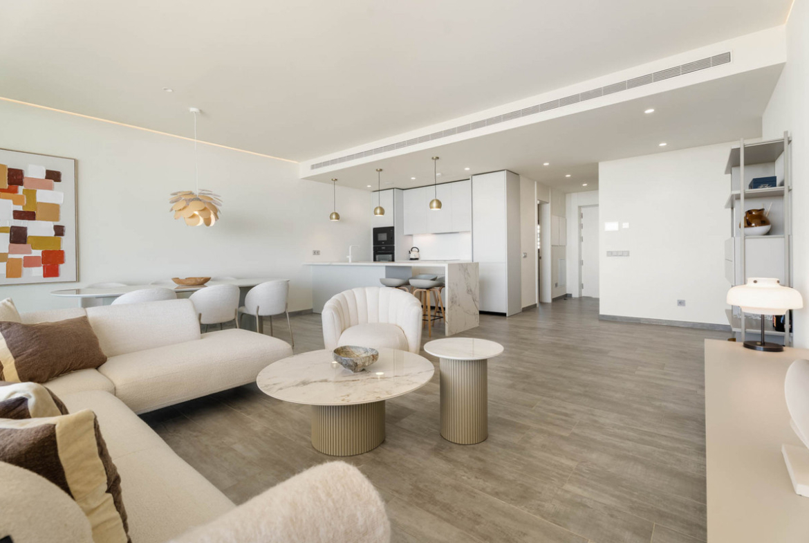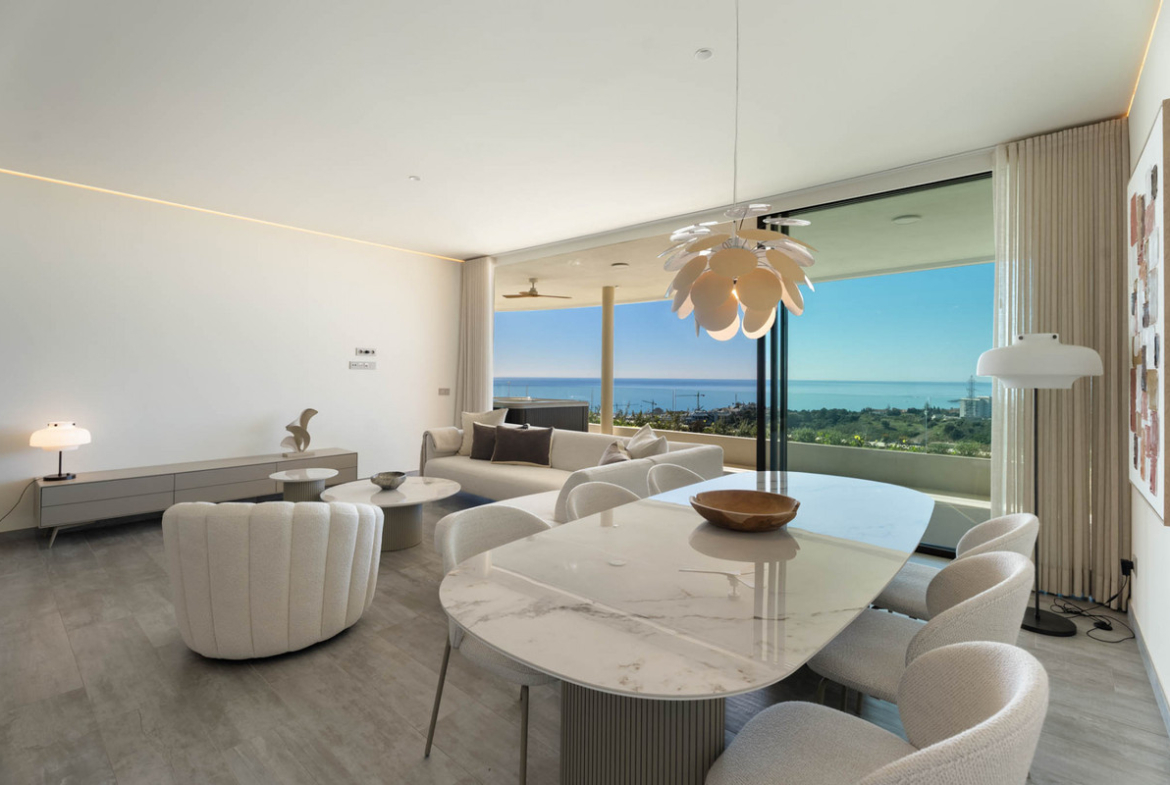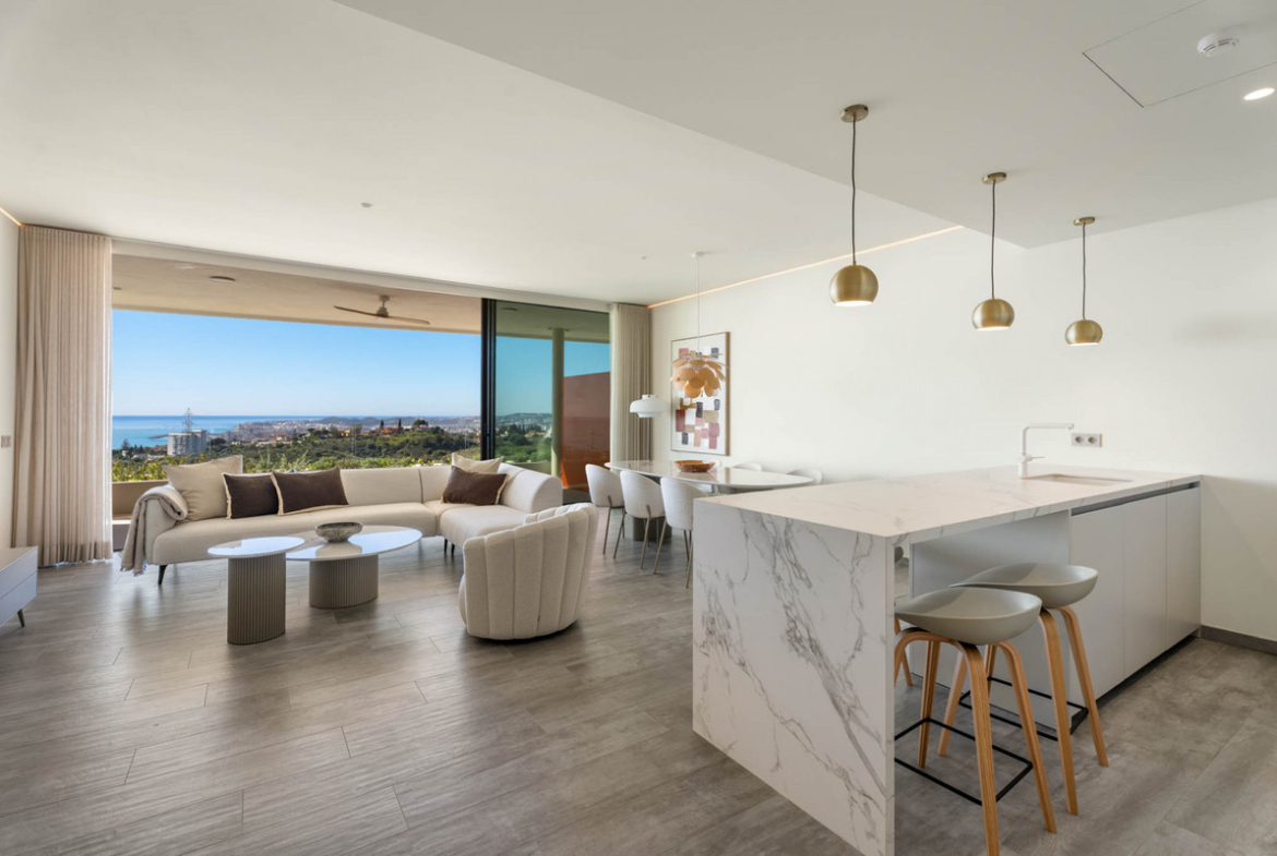 Situaded within a secure residential enclave in El Higuerón, this brand-new three-bedroom corner apartment offers refined contemporary living with open sea and valley views.