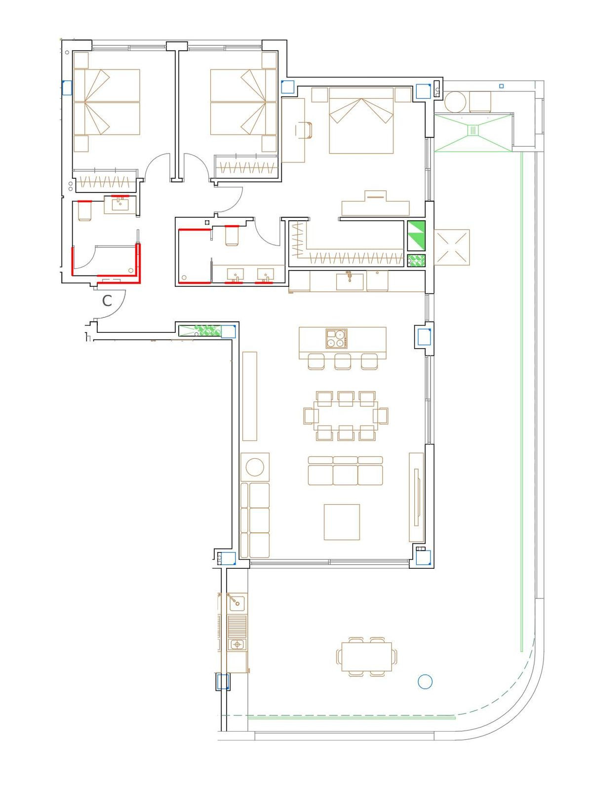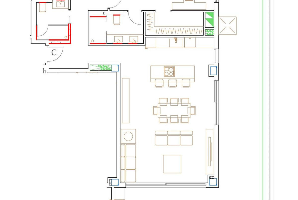 There are some luxury details to the apartment and top quality finishes. There are outdoor and indoor “raindance” shower heads. Bathrooms have anti humid and ledlights in the mirrors and underfloor heating
