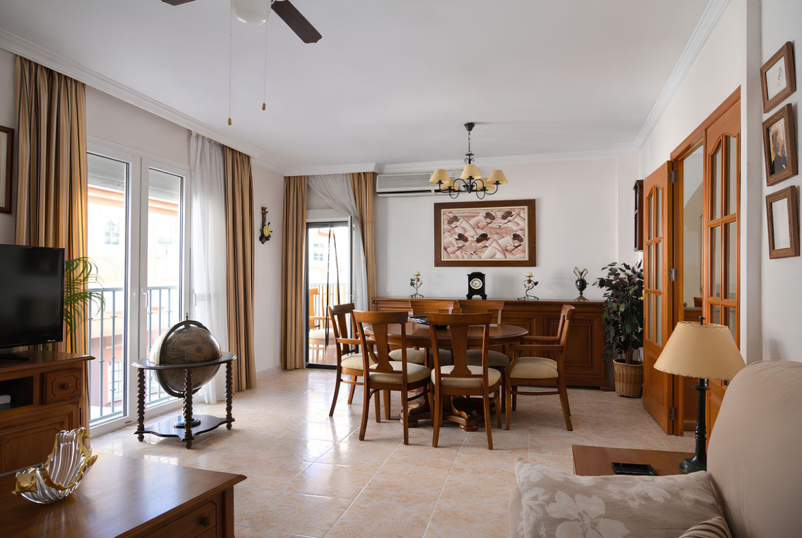 The property enjoys an excellent location and features a spacious entrance leading to a bright and welcoming living room with access to a terrace facing west, perfect for enjoying the afternoon sun and pleasant mountain views.