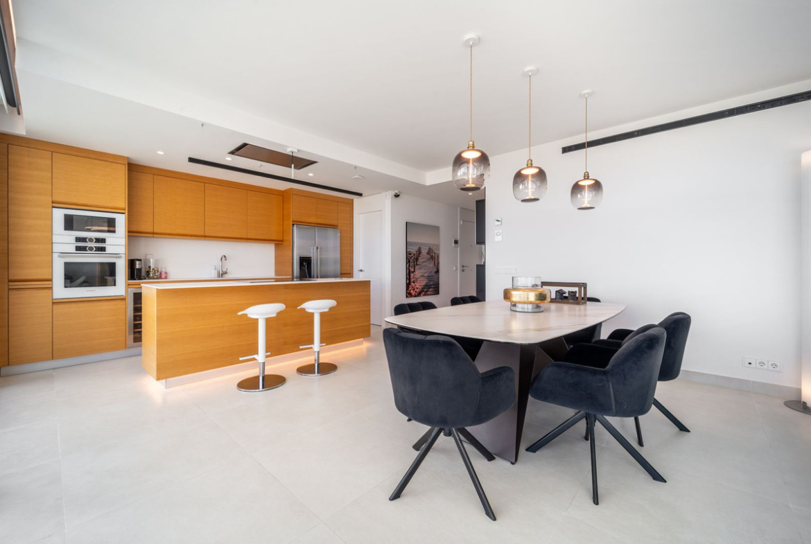 Luxury south facing apartment, in the exclusive urbanization of Higuerón West, with 3 bedrooms, 3 bathrooms of which 2 are ensuite, spacious living-dining room, open plan kitchen with large island, oversized cooktop, and high-end smart appliances, including an American fridge and wine-cooler, laundry area with washing machine/dryer, large terrace of 35m2 with beautiful sea and garden views. Master bedroom with walk-in closet, open plan ensuite bathroom with double shower and access to a terrace of 7m2. Air conditioning hot and cold, video intercom, domotic system, built-in wardrobes in all bedrooms, electric awnings on main terrace and motorized smart dual blinds (Screen & Blackout) in all bedrooms, High-quality LED lighting and smart ambient illumination, Smart alarm and video surveillance system controlled via mobile, Hydraulic underfloor heating throughout the apartment. Includes two parking spaces (with electric car charger) and one storage room.