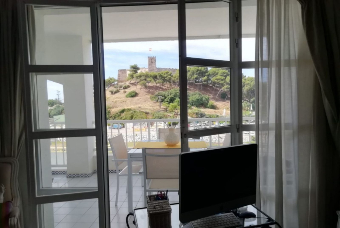 A prestigious apartment is now for sale on the fourth floor in one of Fuengirola's most sought-after beachfront locations. The property boasts unparalleled panoramic views of the sea, the Fuengirola River, and the iconic Sohail Castle, guaranteed to remain unobstructed by any future construction.