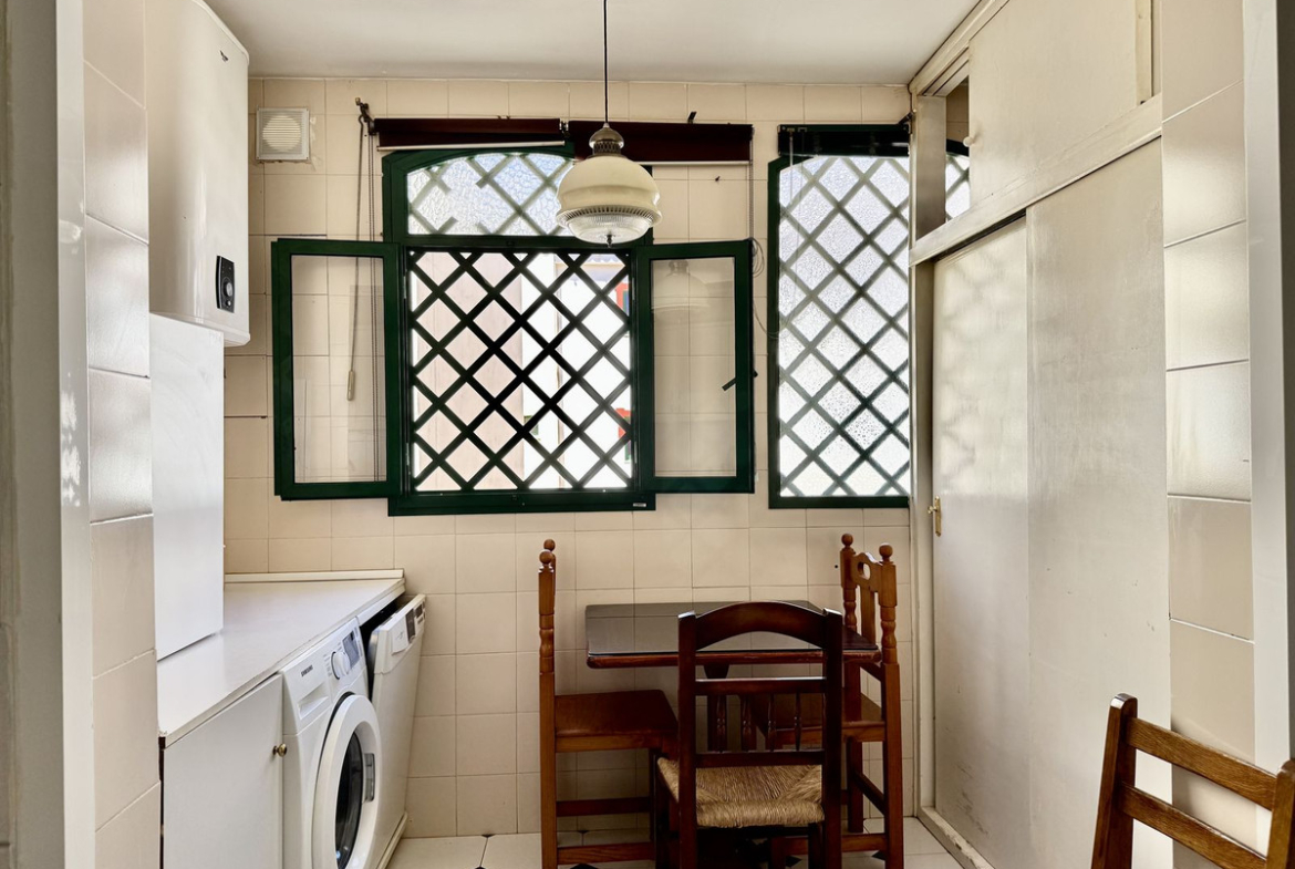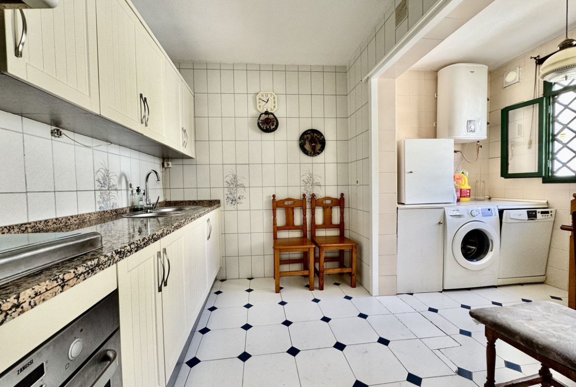 The kitchen is located next to the living room and offers the possibility to create a modern open-plan layout by easily removing the wall. Every room has plenty of windows and a bright atmosphere that reflects a classic Andalusian style.