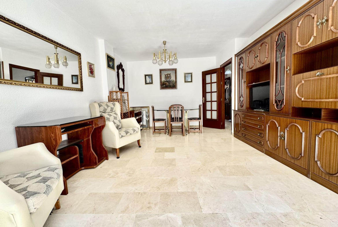 Welcome to this bright and spacious apartment with an unbeatable location in the very center of Fuengirola – right next to the bus station yet tucked away on a quiet street, with everything you need around the corner: shops, restaurants, cafés, and just a short walk to the beach.