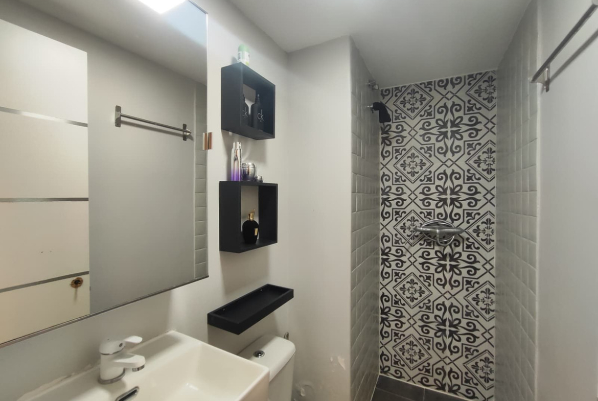 It features a very bright living room with access to a terrace, a fully renovated independent kitchen with utility room, and a convenient guest bathroom with a walk-in shower.