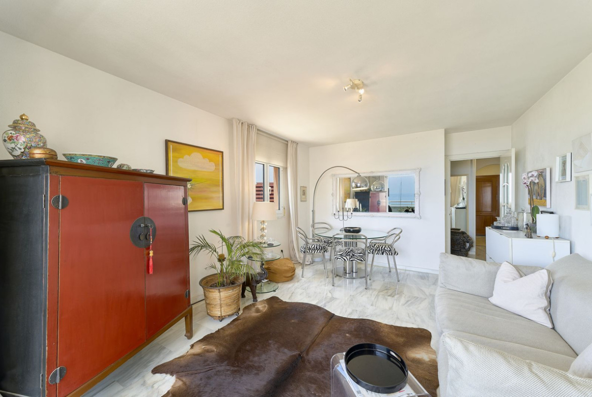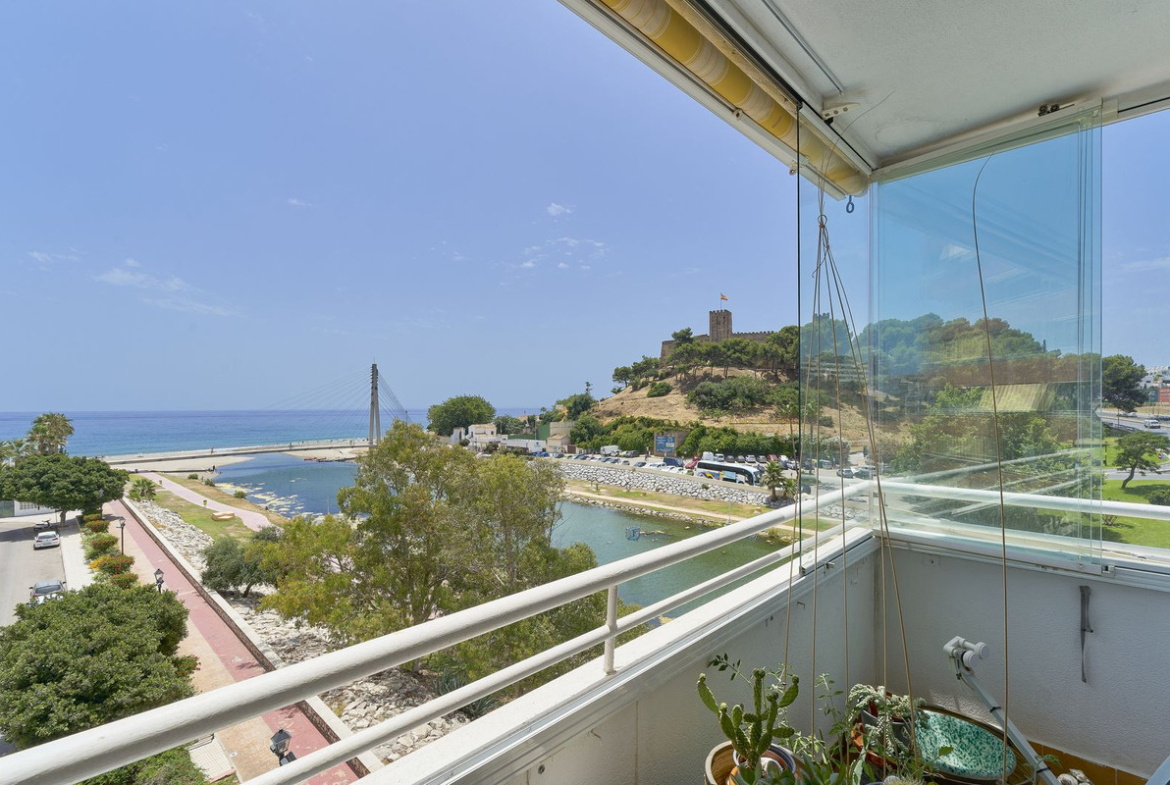 This 3-bedroom, 2-bathroom apartment is located in the last building before the river next to Sohail Castle in Fuengirola, offering unobstructed views of both the sea and the historic castle. The property includes a private terrace accessible from the living room and the master bedroom, and is only a minute's walk from the beach. The apartment features built-in wardrobes, an underground parking space, and a separate storage room. Situated next to a playground and a park, and well connected with a nearby bus stop, the location offers easy access to both leisure and transportation options.