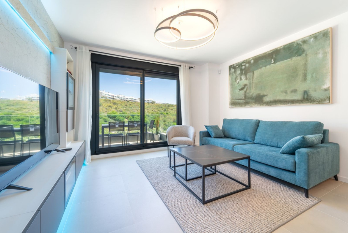 Brand new east facing apartment, with 3 bedrooms, 2 bathrooms, spacious living-dining room, open plan kitchen fully furnished and equipped with electrical appliances, laundry area with washing machine, spacious terrace of 22m2 with mountain views and partial sea views. Master bedroom with walk-in closet and ensuite bathroom. Air conditioning hot and cold, built-in wardrobes in all bedrooms and living room, blinds in bedrooms and living room. Includes one parking space and storage room.