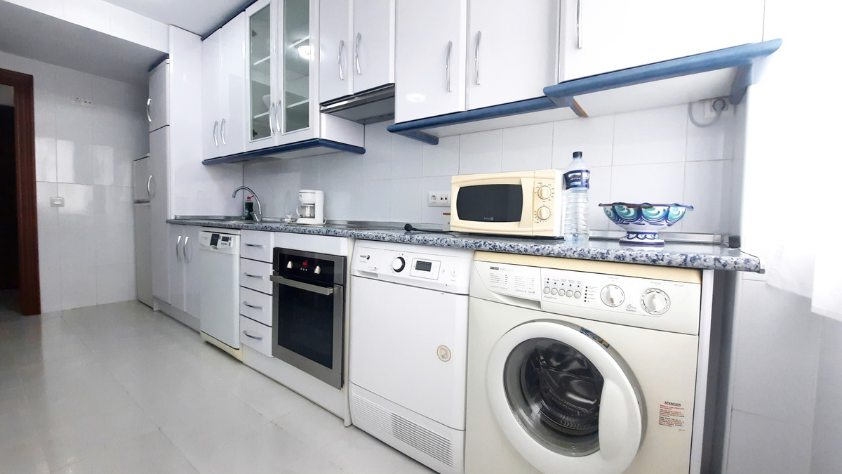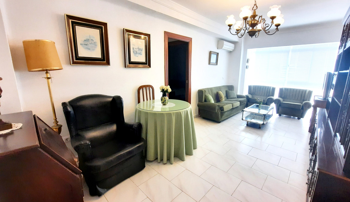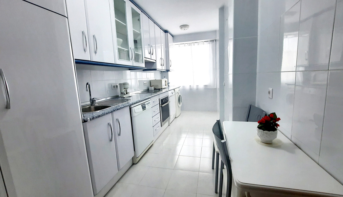 Location, location, location! Right in the centre of Fuengirola, near transport, shops and restaurants, this apartment for sale has an excellent position for a holiday place or for rental purposes. The kitchen and the bathroom have been renovated, both with new electric and plumping and new fittings. The utility in the old kitchen has been integrated into the new one, giving more lightning with a big window and making a bigger kitchen. The apartment offers 3 bedrooms, the terrace has been integrated into the lounge, but it can be easily converted back. The water is included in the communit fees. New security door instaled, double glazed windows, shutters are new, and there is A/C. Good value for money.