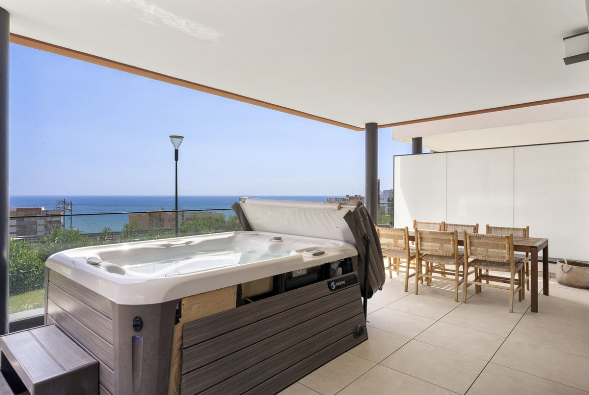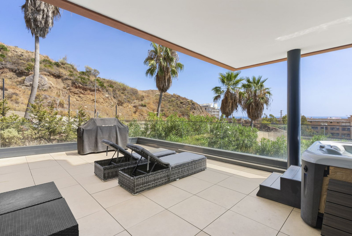 This apartment features 3 spacious bedrooms, 2 modern bathrooms, and an open-concept living area that leads to a magnificent 63m² terrace. The terrace is perfect for entertaining, with a built-in barbeque and a private jacuzzi where you can relax and enjoy the breathtaking views of the Fuengirola coastline.