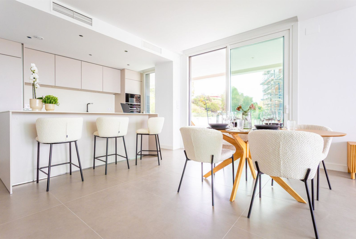 Beautiful 1st floor corner apartment in a new developed urbanisation with views towards the city of Fuengirola and the beaches on the Medeterranian sea.
