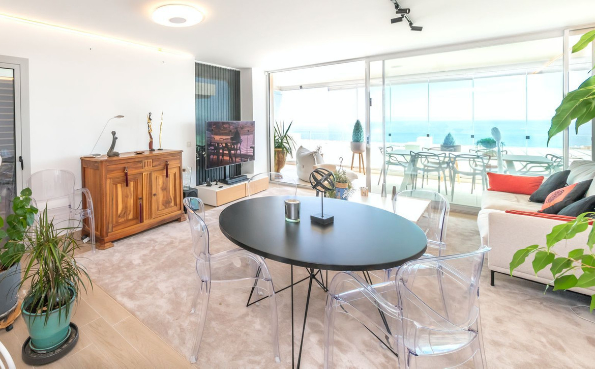 Discover the Mediterranean lifestyle in this magnificent 3-bedroom, 2-bathroom apartment, located in the exclusive area of El Higuerón. This property offers exceptional panoramic views of the Mediterranean Sea that you can enjoy from its spacious 32 m² terrace. Furthermore, the sea view will always remain unobstructed, as no construction is permitted in front, guaranteeing a magnificent and permanent perspective.