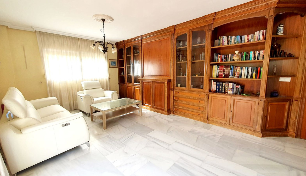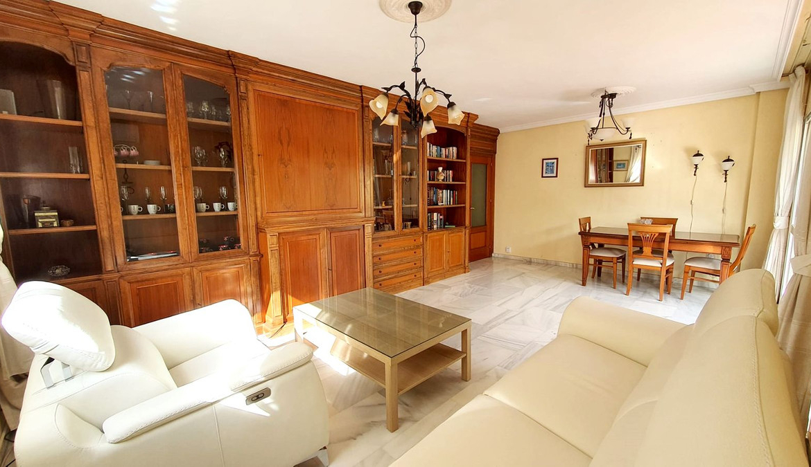 Fantastic corner apartment for sale in Fuengirola with excllent qualities. It has a lovely bright lounge dining with wooden piece of furniture and access to a sunny terrace opposite a park.The kitchen is fully equipped wooden kitchen with utility and breakfast area. The apartment offers 3 bedrooms and 2 bathrooms, one en suite with window, in the master bedroom which is large and full of wardrobes. The property is set in a bulding with lift, wheelchair access close to all amenities. There is a parking space and a big storage with natural ventilation included in the price. Open to offers.