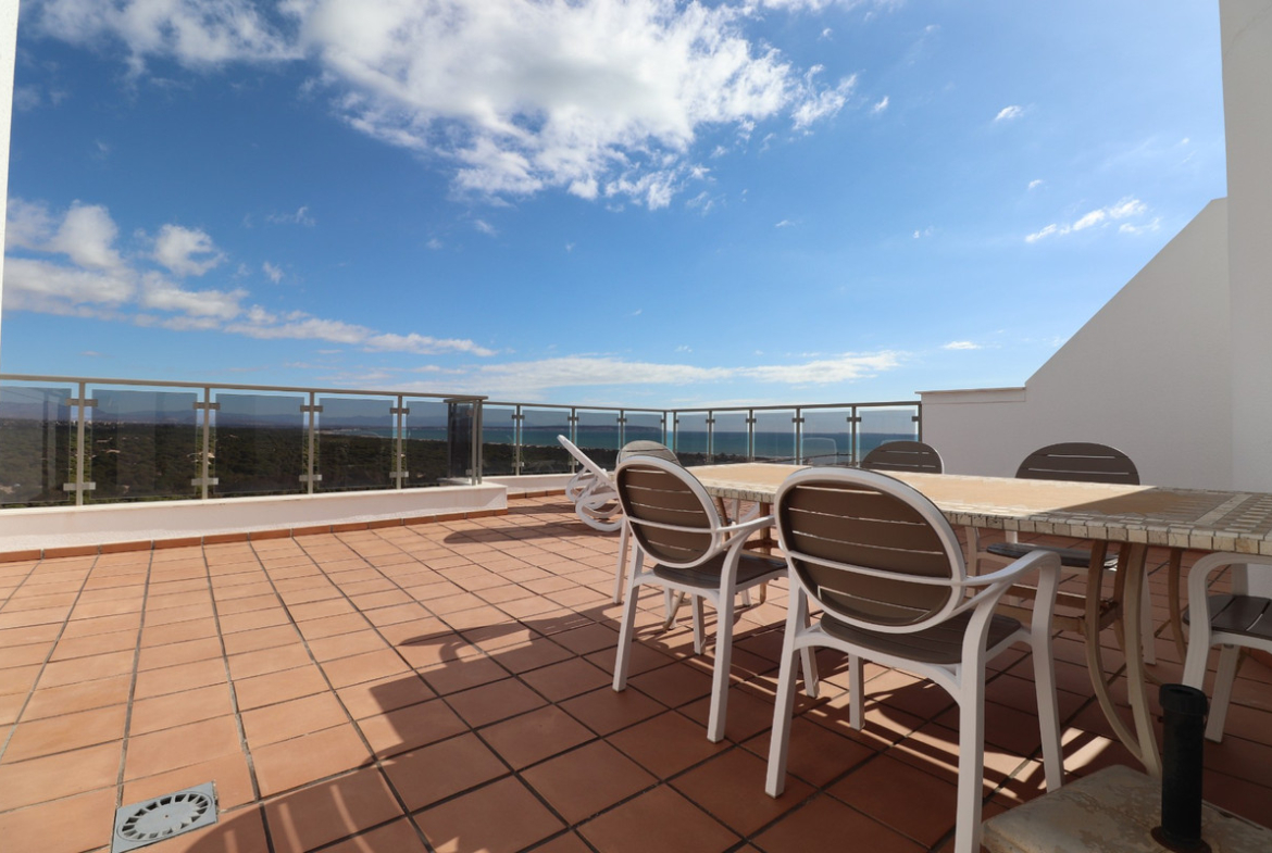 This Stunning, Corner, East Facing, Three Bedroom Penthouse, Duplex Apartment in Guardamar del Segura is located at the port, on the 10th Floor, within a Secure Gated Community boasting luxury amenities. With a spacious 10m2 uncovered terrace and an expansive 74m2 private rooftop solarium, this residence offers unparalleled panoramic views across the river, the sea, pine forest, and mountains beyond. Inside, the property features fitted wardrobes in each of the three bedrooms, ensuring ample storage space, while air conditioning throughout ensures year-round comfort. Residents can enjoy leisure time in the communal swimming pool, tennis court, playground, and mini-golf area, all within the gated community. Parking is convenient with two private underground enclosed garages measuring 42m2 and 37m2 respectively, along with a private underground car parking space. The separate kitchen with an adjoining utility room adds practicality to the living space, while security is enhanced with a sturdy security door. Outdoor living is enhanced with a sun awning on the terrace, providing shade on sunny days. The property's prime location places it less than 500 meters from the beach and seafront, offering easy access to the coast's stunning amenities. Situated in Costa Blanca South, this residence is within easy reach of local amenities and facilities, making it an ideal choice for those seeking luxury living in a vibrant coastal community. Absolutely Remarkable Views! One not to be missed!!!