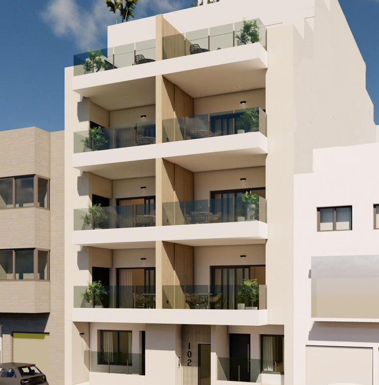 Complex enjoys a prime location in the heart of Guardamar del Segura, Alicante, within a short 5-minute stroll to the beach and surrounded by essential amenities. This development offers an exclusive selection of 10 residences, each featuring 3 bedrooms and 2 bathrooms. Prospective buyers can choose from ground-floor units with private entrances and pools, mid-level apartments with expansive terraces, or luxurious penthouses. The development features a communal rooftop solarium equipped with a jacuzzi, relaxation area, and storage facilities. Optional parking spaces are available just a quick 4-minute walk away, enhancing convenience for residents. The residences boast exceptional quality and they represent a superb choice for investment, vacations, or year-round living. The vibrant town of Guardamar del Segura offers a dynamic lifestyle, ensuring that this residential community remains an outstanding place to call home.