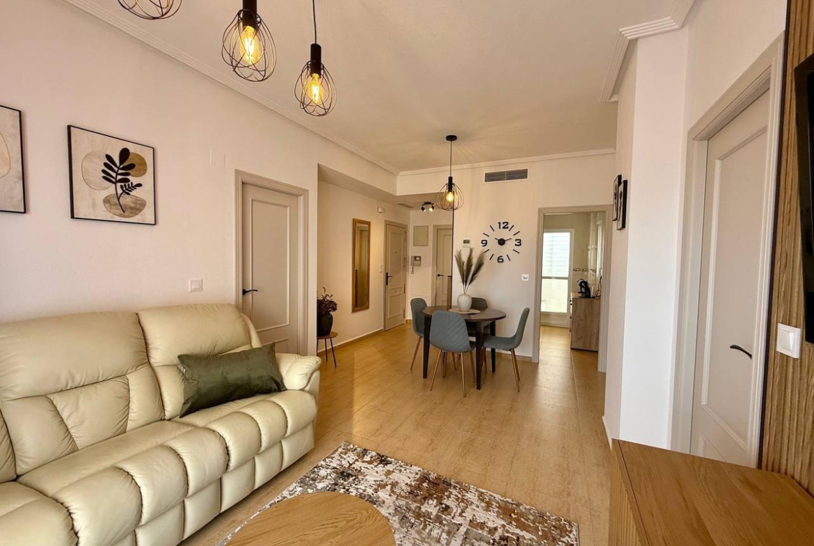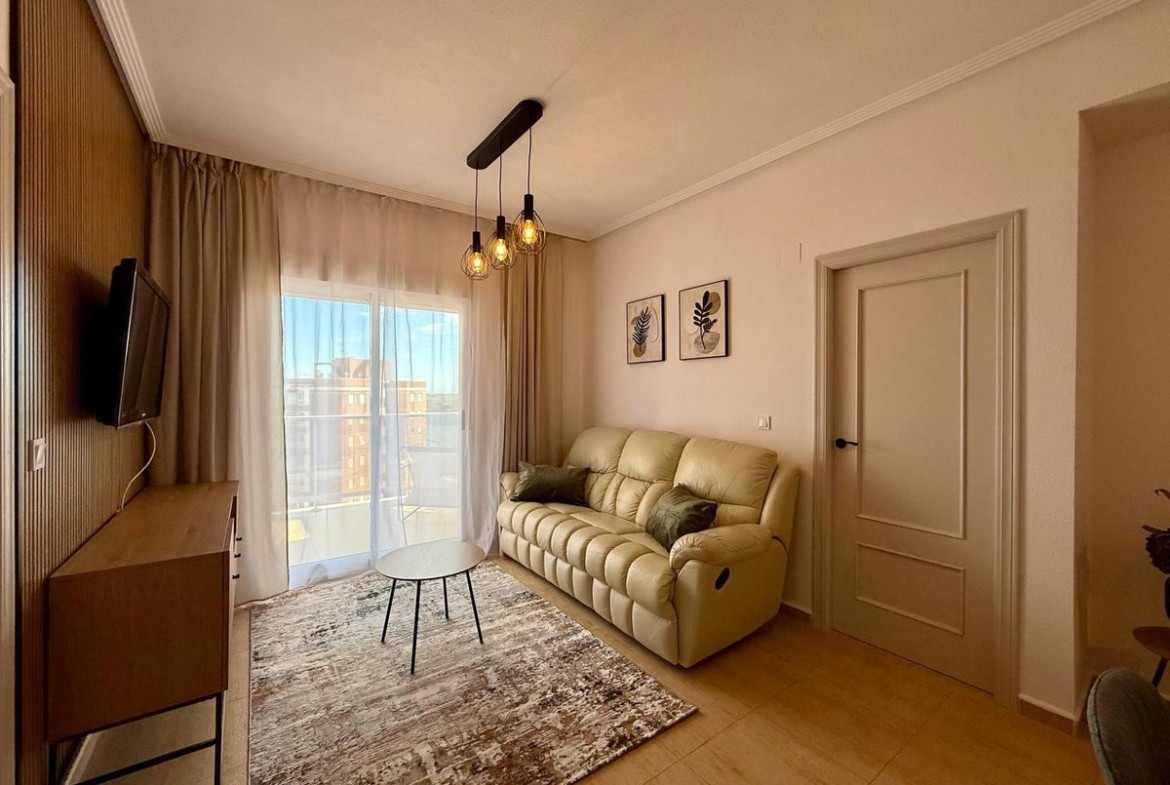 Renovated penthouse in Guardamar del Segura, PUERTO area, 79 m2, 1400 m from the beach, 3 double bedrooms, 2 bathrooms, southeast orientation.Extras: pmr access, central air conditioning, air conditioning, built-in wardrobes, elevator, balcony, garden, bright, light, furniture, communal pool, automatic irrigation, terrace, adapted housing, trees, coast, parks, supermarkets, fenced, sea views, clear views, playgrounds, parking included.