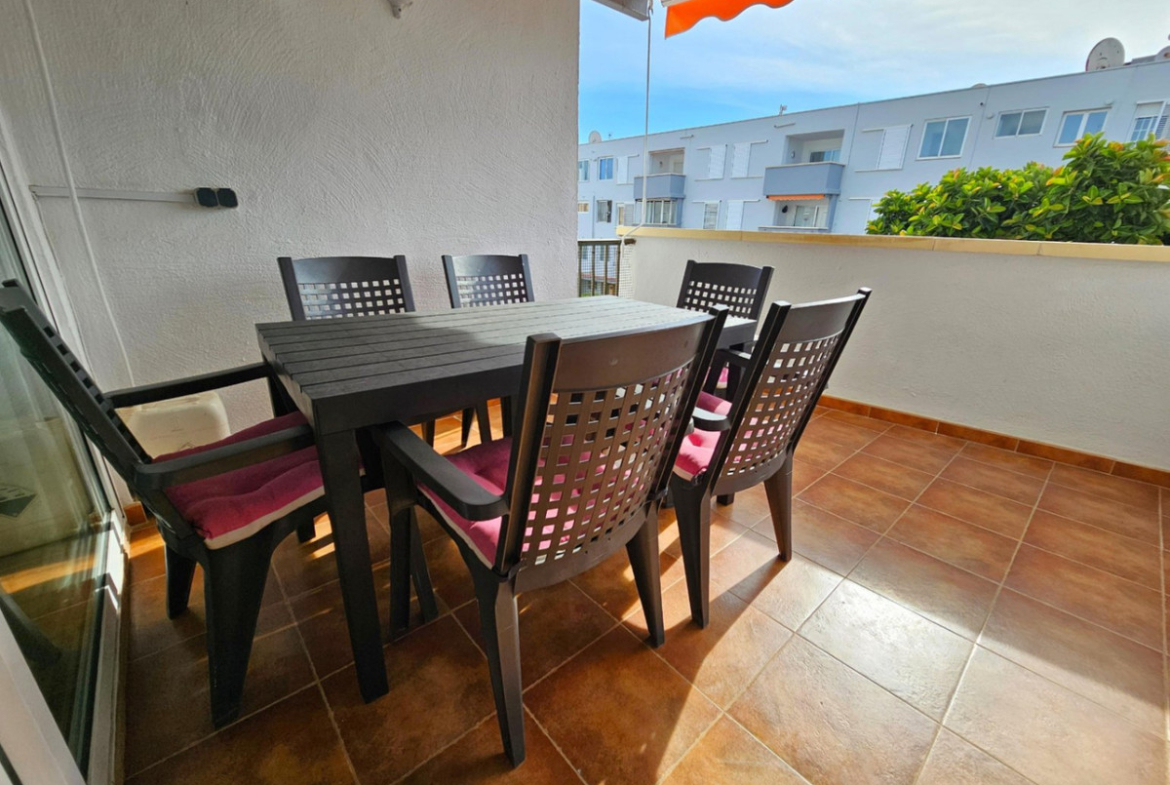 Beautiful flat in the Arenal of Jávea, a few steps from the beach and close to all amenities, this flat of 80 m² has three bedrooms with fitted wardrobes and a bathroom with a large shower. The kitchen is of a good size with access to a utility room, which makes it very comfortable for day to day living. The living/dining room is equipped with air conditioning hot/cold and is very luminous as it has access to a large terrace with awning, perfect for lunch or dinner enjoying the magnificent weather of Javea. The flat has been completely and tastefully refurbished with parquet flooring, double glazed windows with shutters, contemporary bathroom and kitchen and is being sold furnished, making the move much less complicated. It also comes with a private covered parking space and a storage room of 12 m².