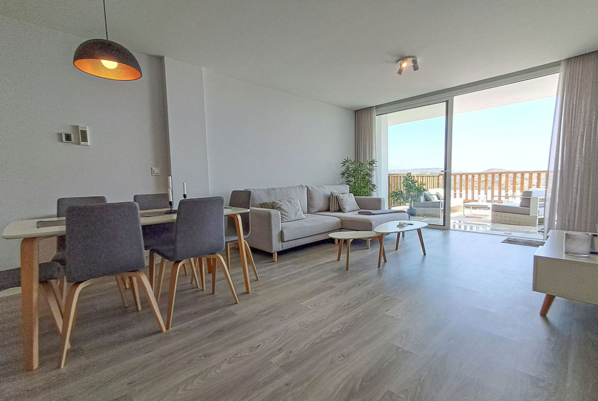 The property welcomes you at the entrance with a bright, modern open-plan kitchen, which in turn leads to the living-dining room. From the living room, you can access its splendid terrace with sea views, perfect for sun lovers who want to enjoy the outdoors in the Mediterranean climate. Everything with a subtle and elegant design, ideal for resting and relaxing.