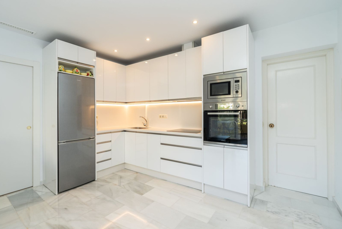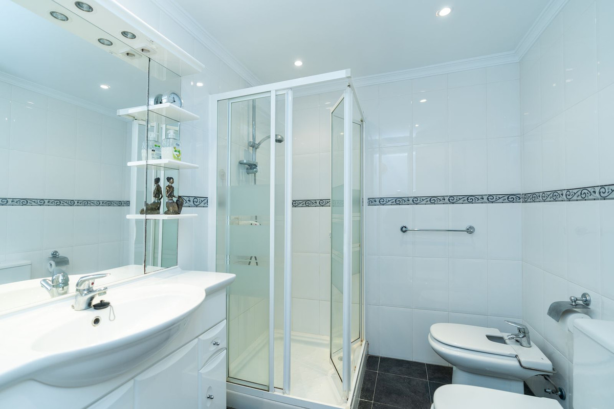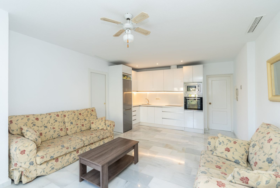 This is a fabulous 3 bedroom apartment in the front line beach complex of Las Mimosas in La Cala de Mijas. Set on the first floor with views over the beautiful gardens, pools and Mediterranean, this is the perfect spot for enjoying the beach life all year round. The apartment comprises an open plan kitchen which has been recently refurbished, large lounge with access to the terrace, master bedroom with en-suite, two further bedrooms and one bathroom. Access is on the street level or go down one level via stairs or lifts to the gardens and pool with direct access out to the boardwalk and the beach. Properties don't come up for sale often in this highly sought after complex so early viewing is highly recommended.