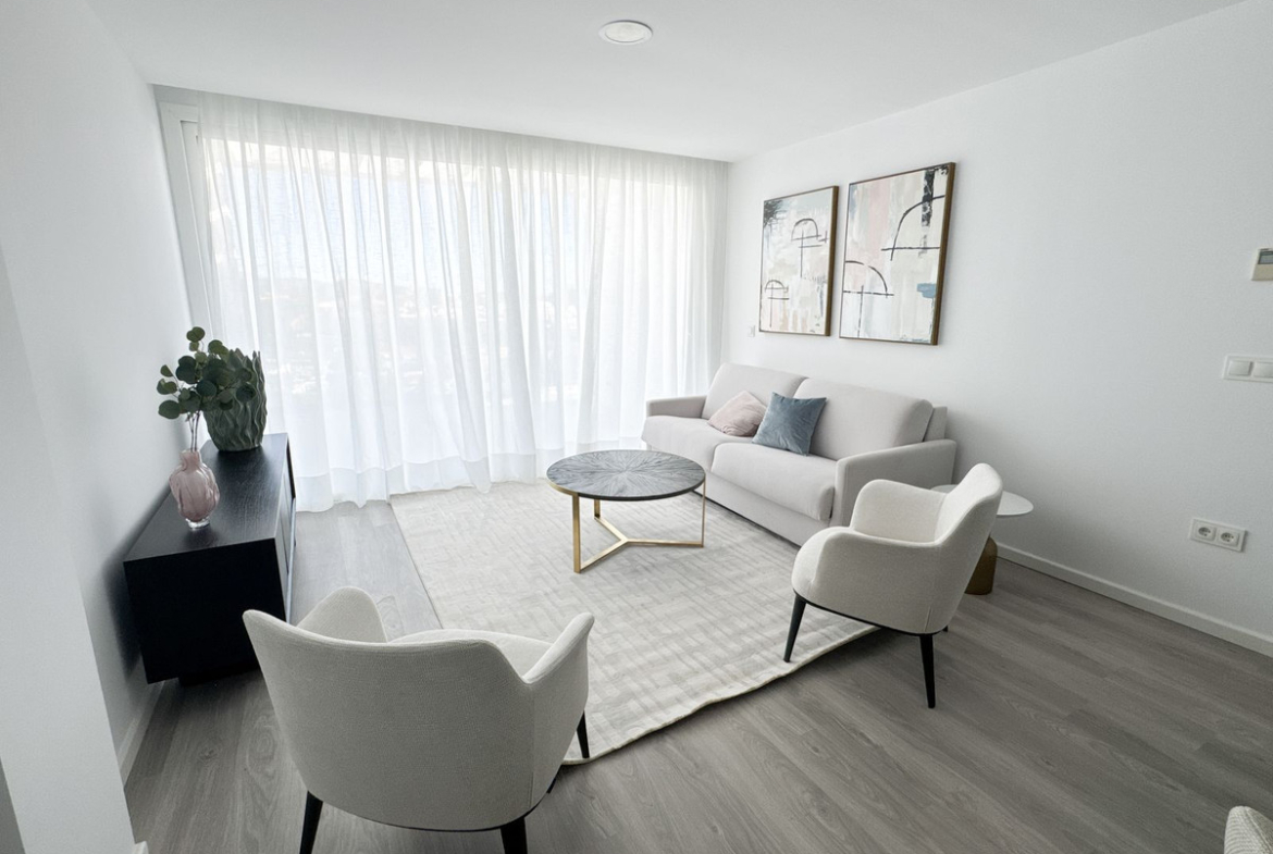 This modern 3-bedroom, 2-bathroom apartment is located in the most privileged position within one of the most know complexes within La cala de Mijas — in the front row, on the lower tier, closer to the pedestrian gate. This ensures panoramic, unobstructed sea views with no buildings in front and zero possibility of future construction blocking the scenery.