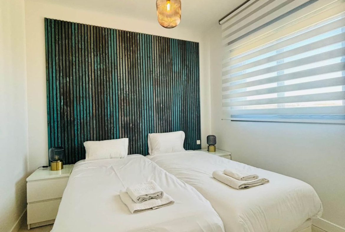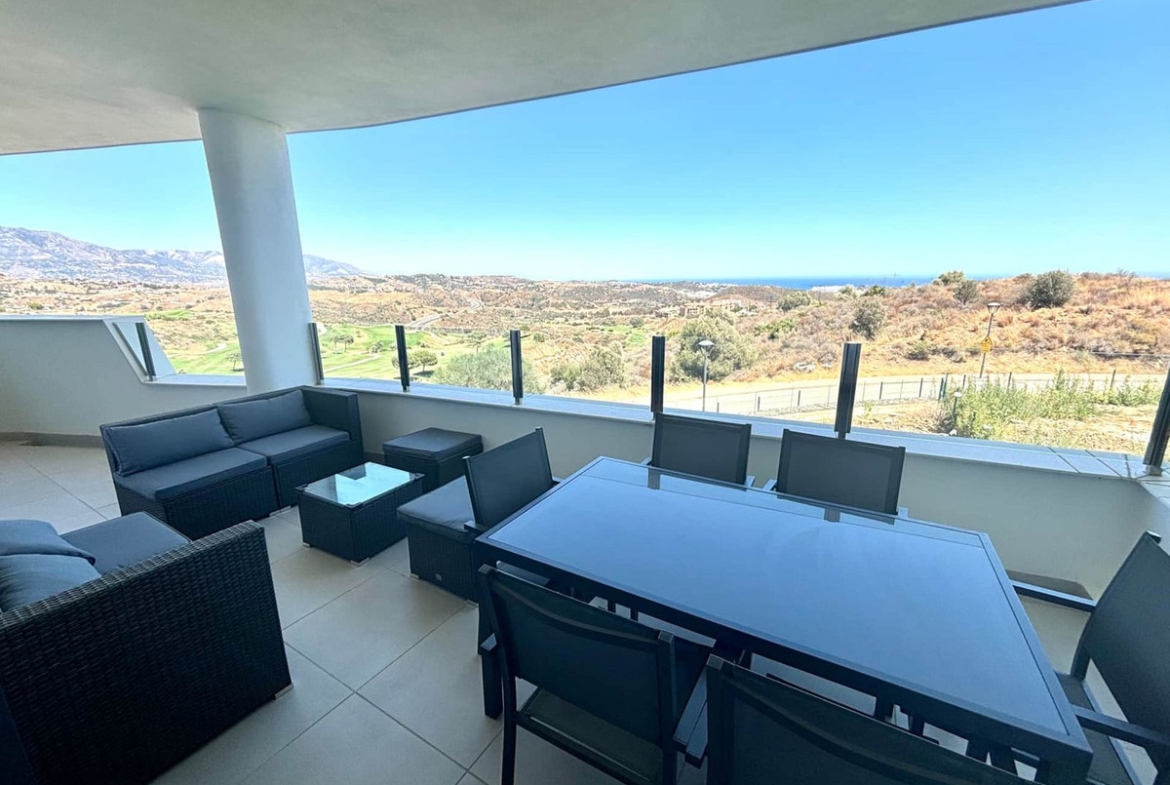 The layout is as follows: an entrance hall with a built-in wardrobe leads to a spacious living room with an open-plan kitchen and dining area, Large and sunny terrace.allows You to enjoy the sun and spectacular views to sea ,mountain and golfcourses all the year. The appartment consists of 3 bedrooms, 1 masterbedroom with ensuite-bathroom , 2 bedrooms and one guest bathroom as well.