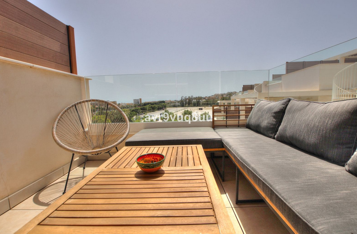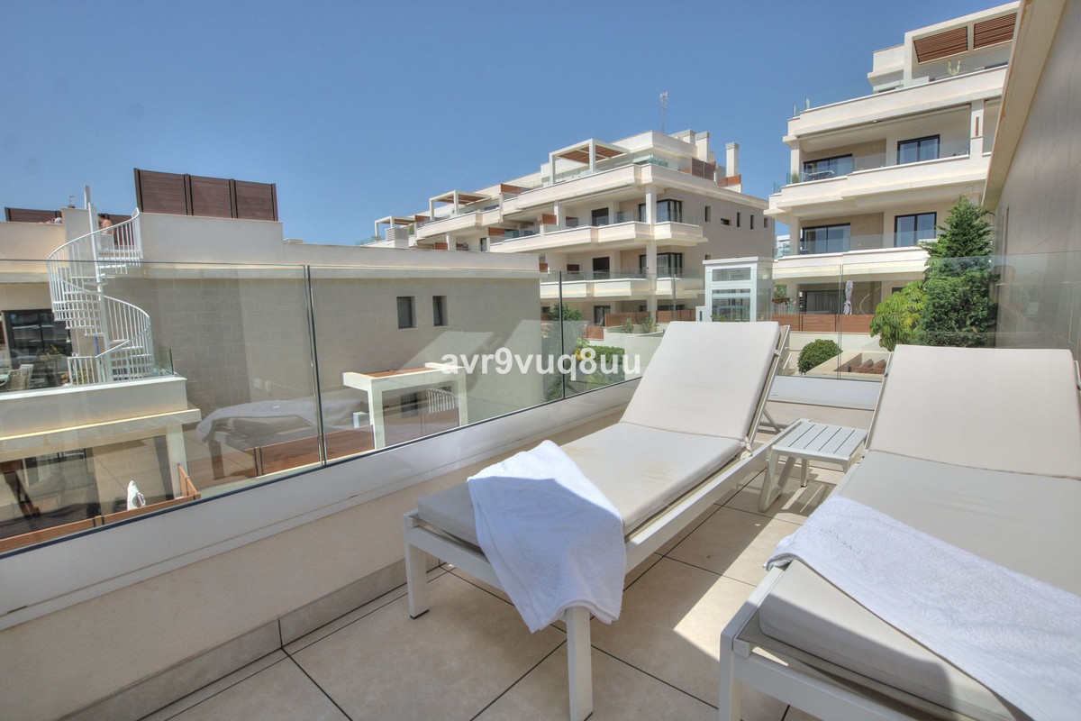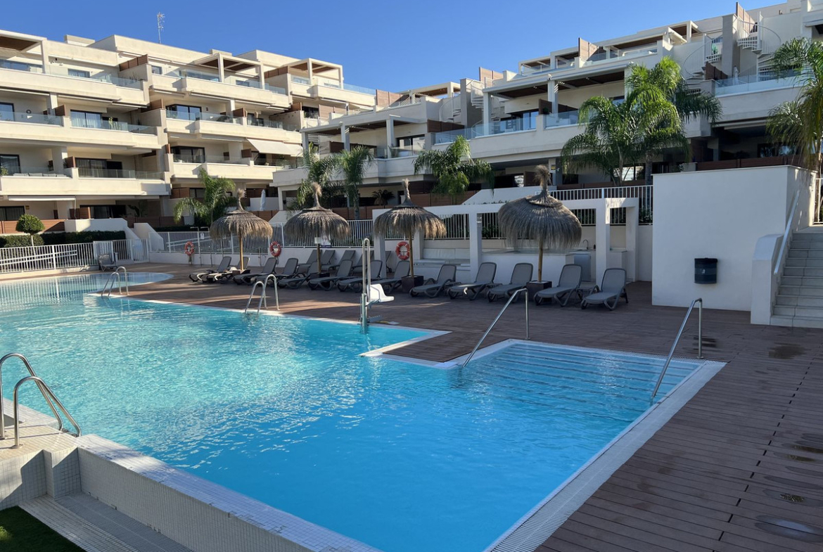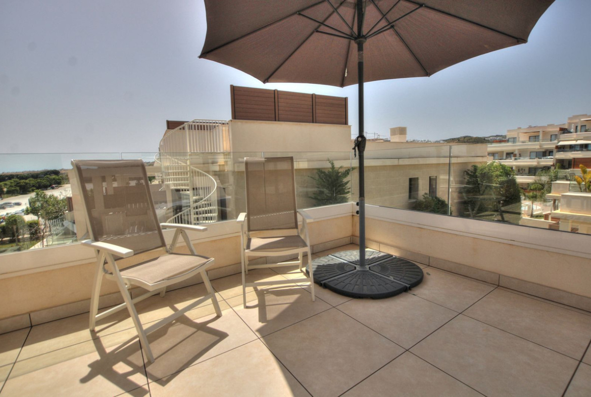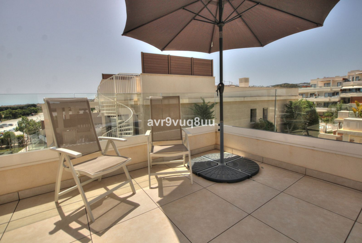 Rare opportunity to purchase a corner penthouse apartment located in the La Noria area of La Cala de Mijas so an easy walk to the town and beach. The west facing terrace has afternoon and evening sun plus owners have the option to install a staircase to access a private roof terrace if you want additional outdoor space. Bright open plan lounge diner with fully fitted kitchen and 3 double bedrooms. The main bedroom has a walk in wardrobe and a gorgeous en-suite bathroom. The guest bedrooms have the use of the additional shower room plus there is an extra guest toilet which could be made into a 3rd bathroom if required. Finished to the highest quality with hot and cold air conditioning this property also includes 2 underground parking space and a huge storeroom. Owners also use of the beautiful communal swimming pool and the upcoming spa. We have keys in the office for you to come and visit this gem of a property