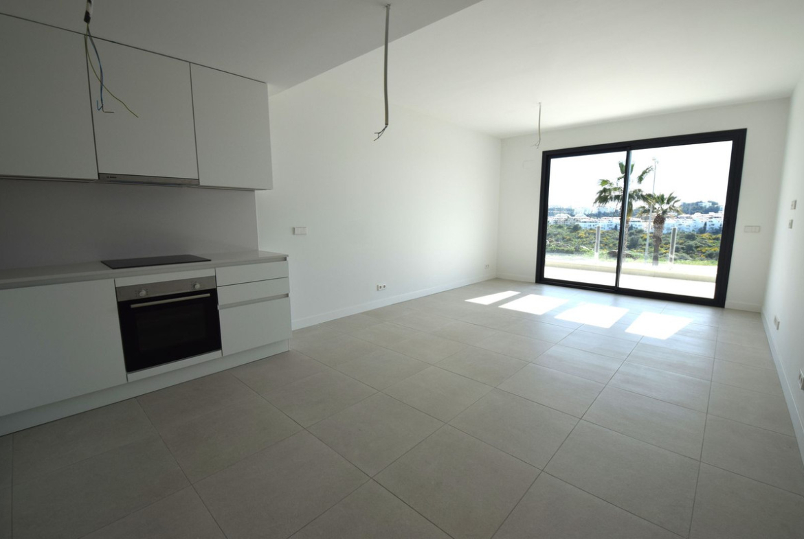 Situated in Calanova Golf, one of the premier locations in La Cala de Mijas, we are pleased to offer this brand new 3 bedroom 2 bath luxury apartment featuring high quality finishes and characterized by cutting-edge architecture. Its innovative design harmoniously incorporates a spacious terrace, allowing the homes to connect with the surrounding landscape and the abundant natural light of Mijas Costa. Located just a few minutes drive from La Cala de Mijas, one of the best towns along the Costa del Sol, this excellent location enables a perfect balance between the serenity of a stunning natural setting and the amenities and entertainment options available in nearby Malaga, Fuengirola, and Marbella. As you enter the apartment you are welcomed by an open plan kitchen/dining/lounge area that has direct access to the southwest facing terrace, with open views of the surrounding countryside and to the sea. The master bedroom also has access to this terrace and the two guest bedrooms are situated on the opposite side of the apartment looking out over the rest of the community. A beautiful deck level communal swimming pool and similar children's pool are in the centre of the community, adjacent to the spacious and well equipped indoor gym and sauna. Also included is an allocated covered parking space and a private storage room.