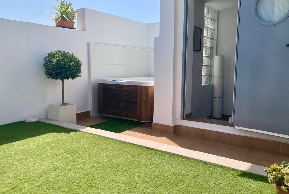 Apartment for sale in , Mijas Costa with 3 bedrooms, 2 bathrooms, 1 on suite bathroom, 1 toilet and with orientation west, with communal swimming pool, private garage (2 parking spaces) and communal garden. Regarding property dimensions, it has 240 m² built, 119 m² interior and 50 m² terrace. Has the following facilities amenities near, air conditioning, fully fitted kitchen, fireplace, marble floors, jacuzzi, solarium, security entrance, double glazing, video entrance, barbecue, guest toilet, private terrace, kitchen equipped, country view, security shutters, laundry room, internet – wi-fi, covered terrace, electric blinds, fitted wardrobes, gated community, lift, doorman, underfloor heating (bathrooms), close to sea / beach, close to golf, uncovered terrace, good condition, close to shops, close to town, close to schools and surveillance cameras.