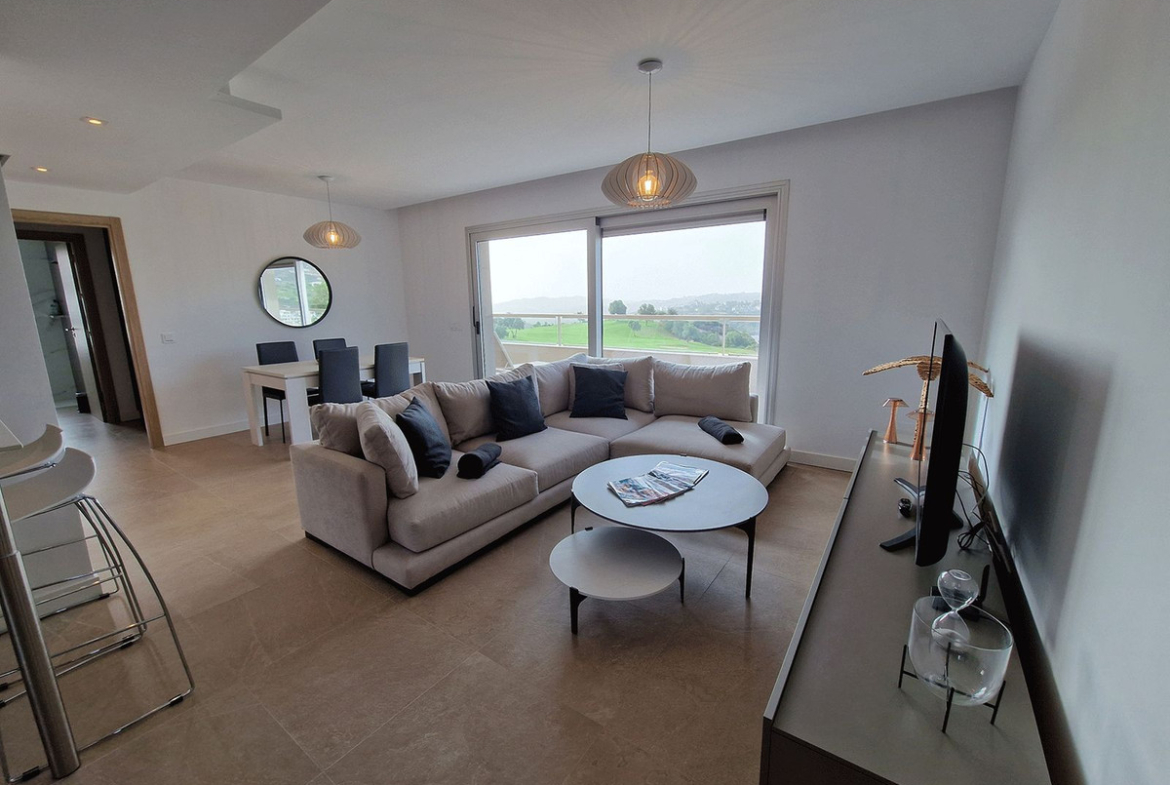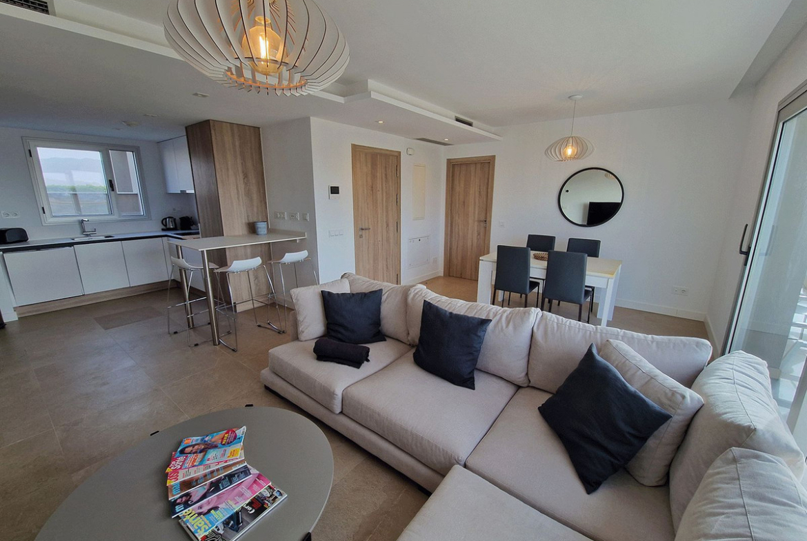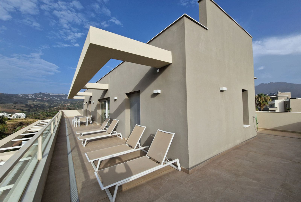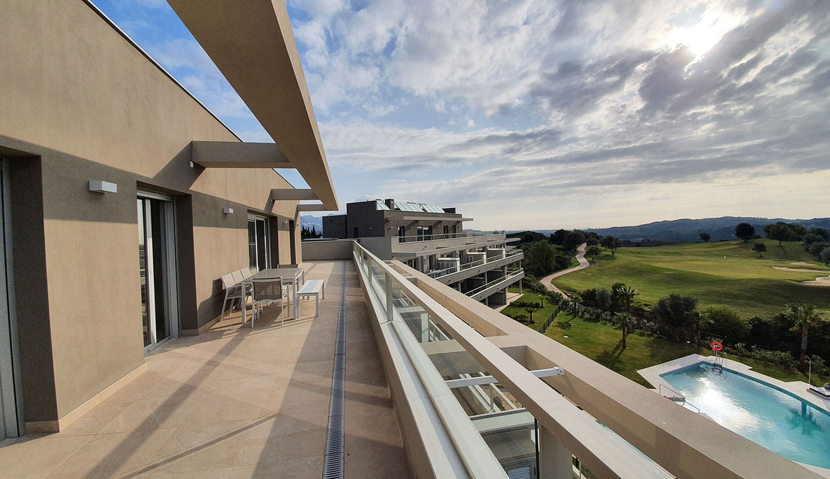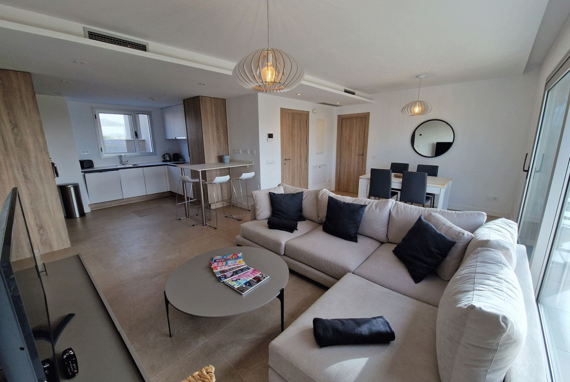 FRONT LINE GOLF PENTHOUSE WITH SEA VIEW!! No other apartment at that floor! This beautiful brand new three-bedroom penthouse stands out for its contemporary style and quality design, it is built with the latest materials and amenities: ceramic floor with large tiles (60×60 cm) from the SALONI brand, in the spacious living room is the kitchen Open built-in with appliances, the two bathrooms with sanitary quality, LED lighting, hot and cold air conditioning and solar panels with the best thermal and acoustic insulation. It is a bright penthouse with lots of natural light and large terrace to enjoy the sun all day long and the beautiful view of the golf courses throughout the day and the sea.
