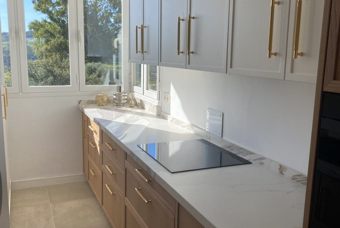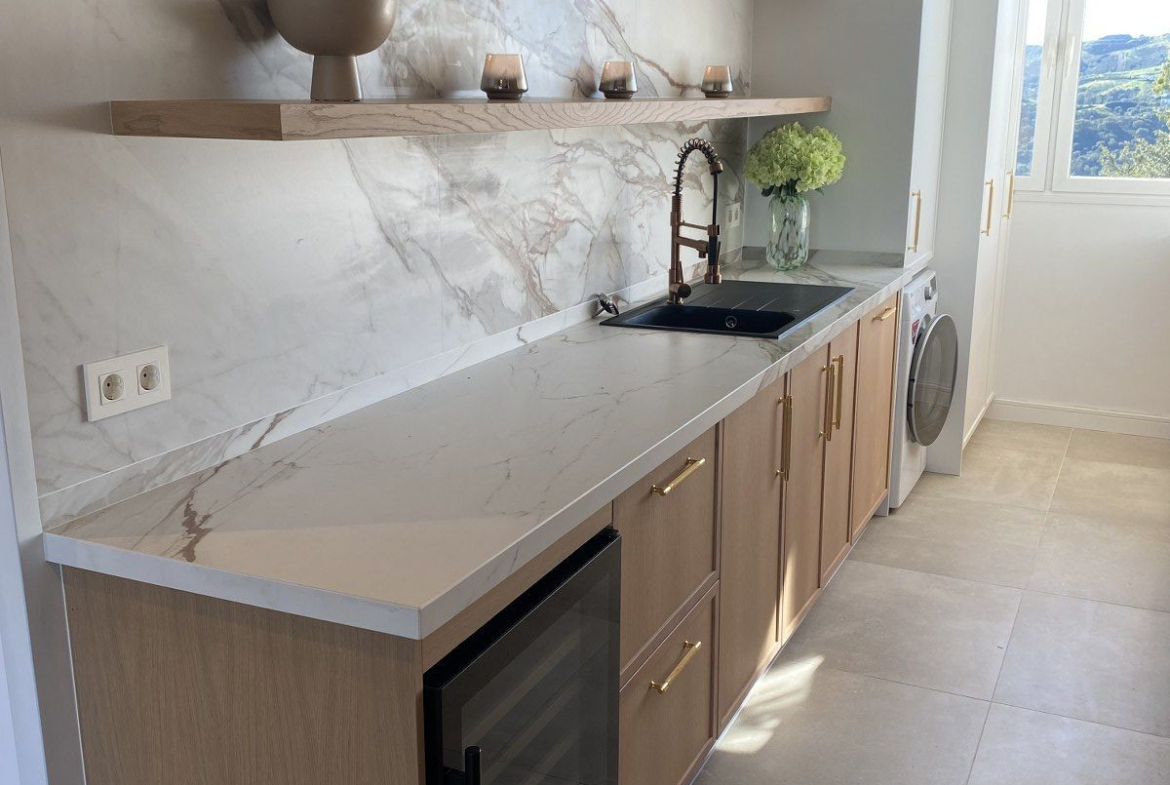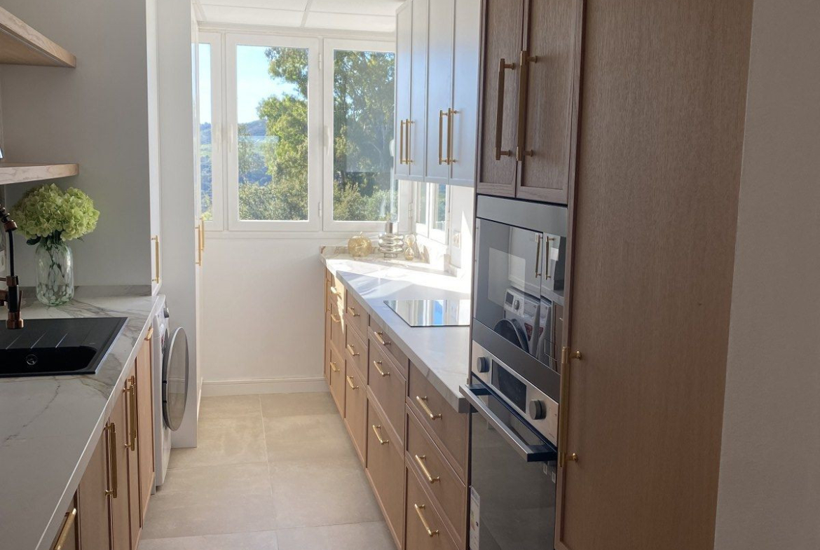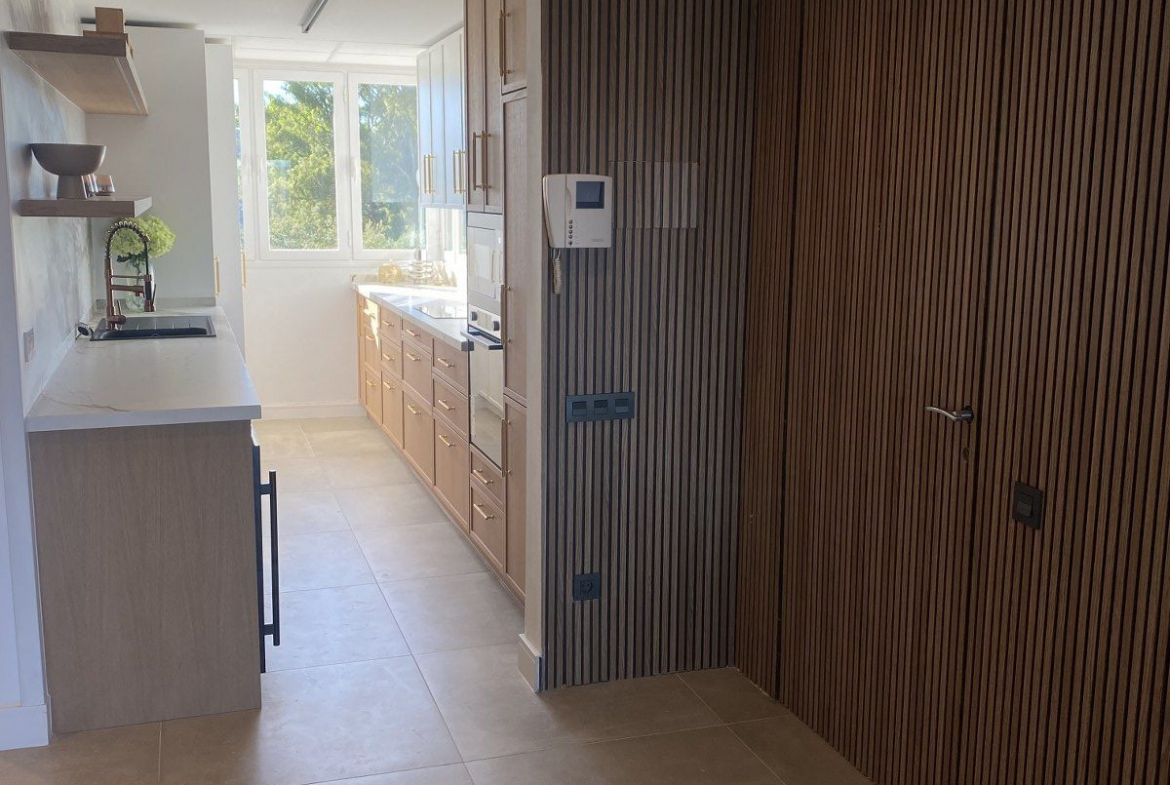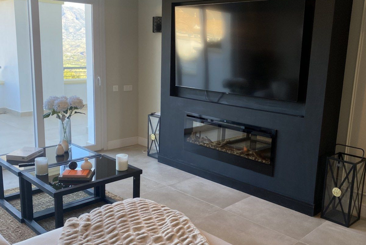 Entrance level: Custom made kitchen with Samsung appliances, real oak cabinets and shelving, the spacious living area features an electric fireplace and access to the large private terrace. On this level there are 2 Large Bedrooms, 1 en-suite with dressing room and 1 guest bathroom. Airzone (climate controlled) air conditioning is fitted throughout the apartment and underfloor heating in the bathrooms.