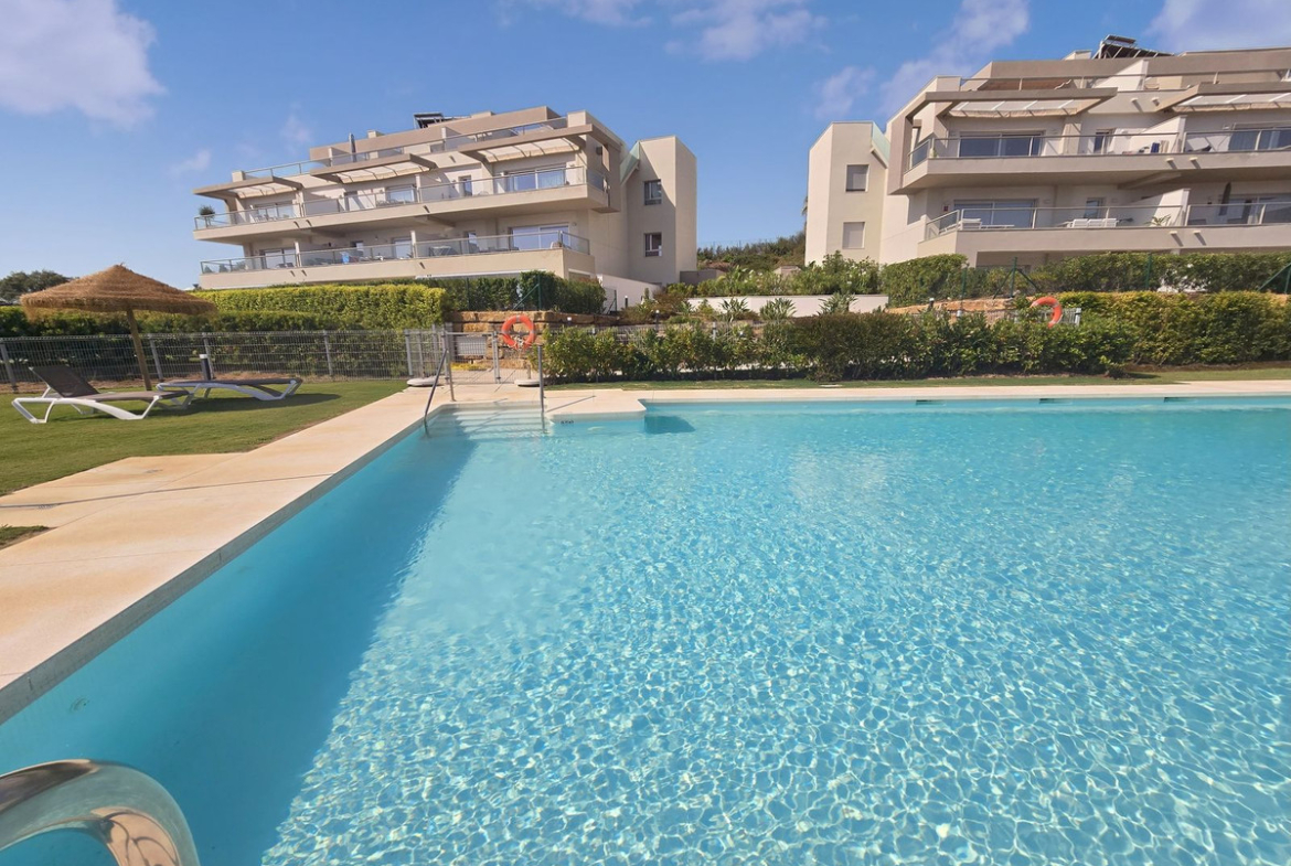 Residents also enjoy access to beautifully landscaped communal gardens and a large swimming pool — ideal for soaking up the sun in a tranquil setting.