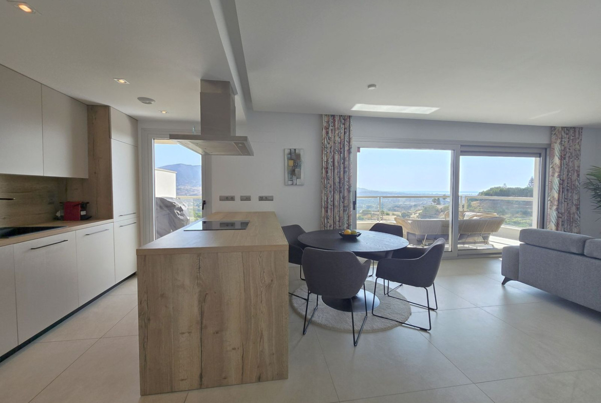 Enjoy the perfect blend of comfort, style, and location with this exceptionally bright, middle-floor corner apartment featuring 3 spacious bedrooms and 2 modern bathrooms. One of its standout features is the expansive terrace, offering breathtaking panoramic views of both the coastline and surrounding mountains. Impeccably presented, this apartment is set in the heart of La Cala Golf, Spain’s premier golf resort — a true paradise for golf lovers. The open-plan living and dining area is bathed in natural light, thanks to floor-to-ceiling windows. A modern, fully fitted kitchen (with separate laudry) integrates seamlessly with the living space and opens directly onto the terrace — perfect for embracing the outdoor lifestyle or entertaining guests.