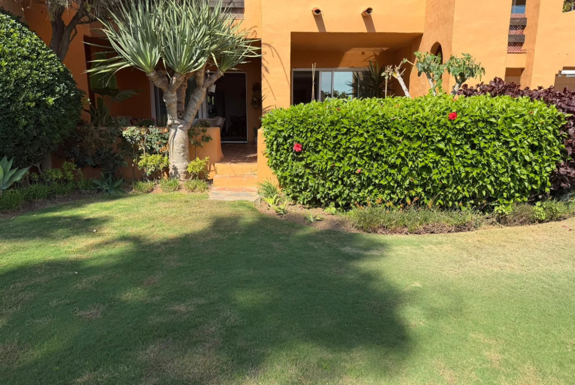 Uncover your perfect seaside sanctuary in the coveted Los Granados Phase II, one of La Duquesa's most exclusive beachfront urbanisations, renowned for its Mediterranean village-style architecture, manicured subtropical gardens, and direct access to a pristine Blue Flag beach. Built in 2004 to the highest standards, this spacious 178 m² built (with generous usable space) south-facing ground floor gem basks in all-day sunshine, offering uninterrupted sea glimpses and a serene escape just steps from the charming Castillo de la Duquesa fishing village and the vibrant Puerto de la Duquesa marina – a mere 5-10 minute stroll away, brimming with international restaurants, lively bars, boutiques, supermarkets, and watersports galore.