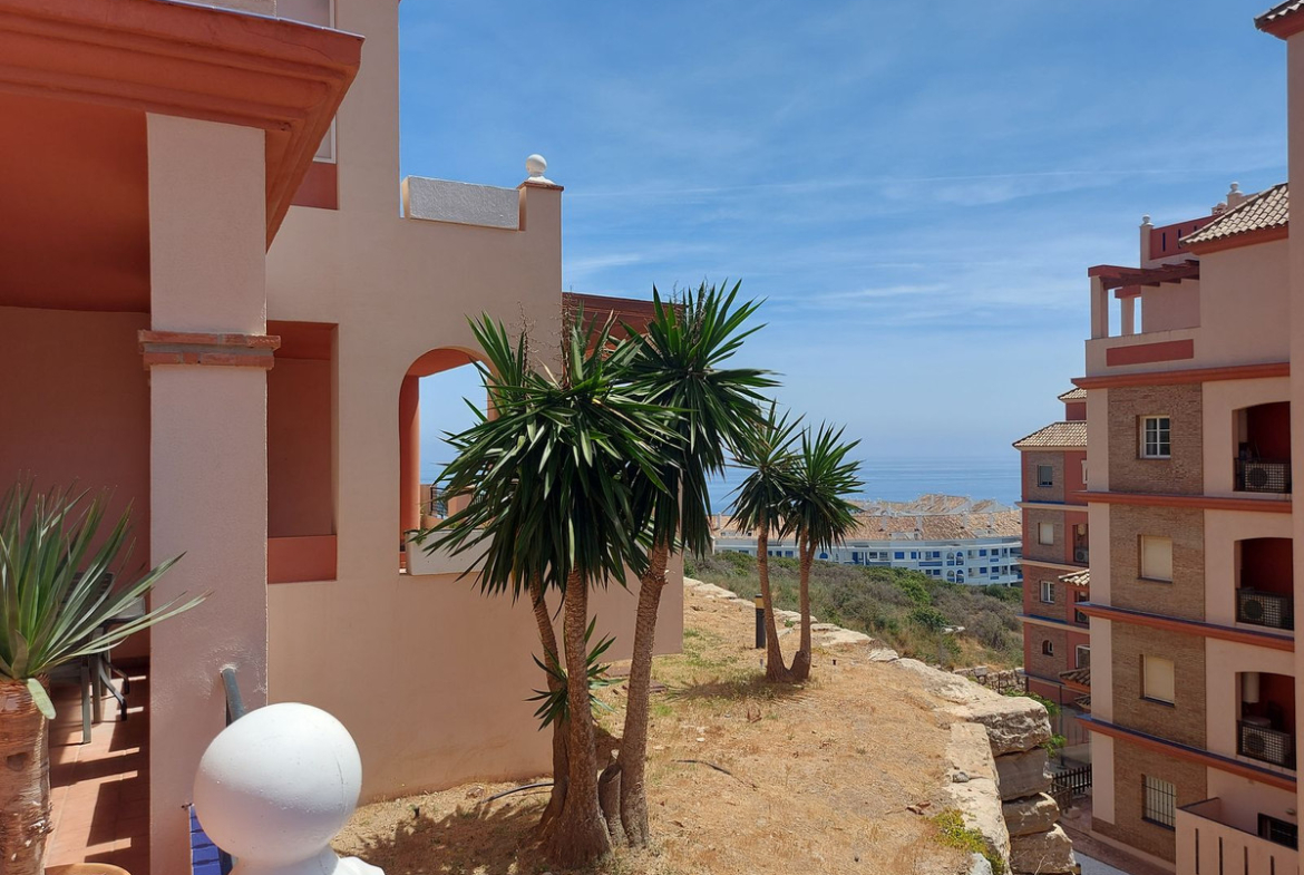 Elevated ground floor apartment with large south facing terrace, only 5 minutes walk to amenities and only 10 minutes walk to Puerto de la Duquesa.
