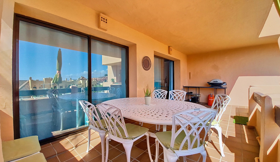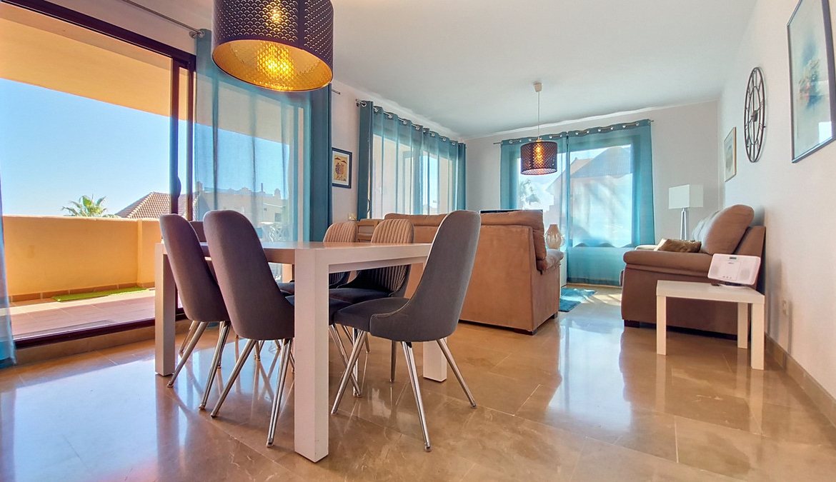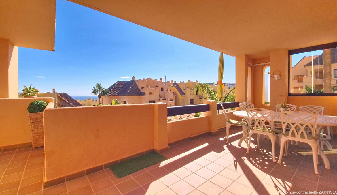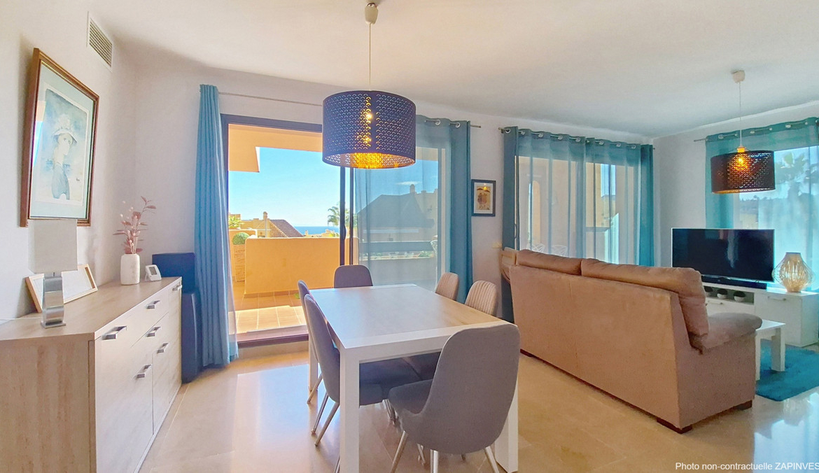 Located in a prestigious residential area close to the Duquesa marina, this apartment offers beautiful views of the sea and the golf course.