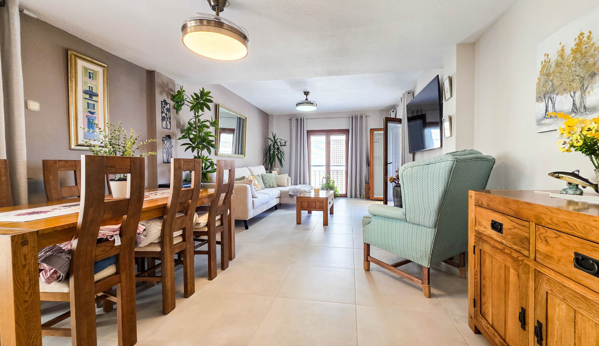 The main living area is bright and welcoming, with direct access to terraces where the partial sea views can be enjoyed throughout the day. The duplex design creates a natural separation between the living and sleeping areas, adding both privacy and practicality.